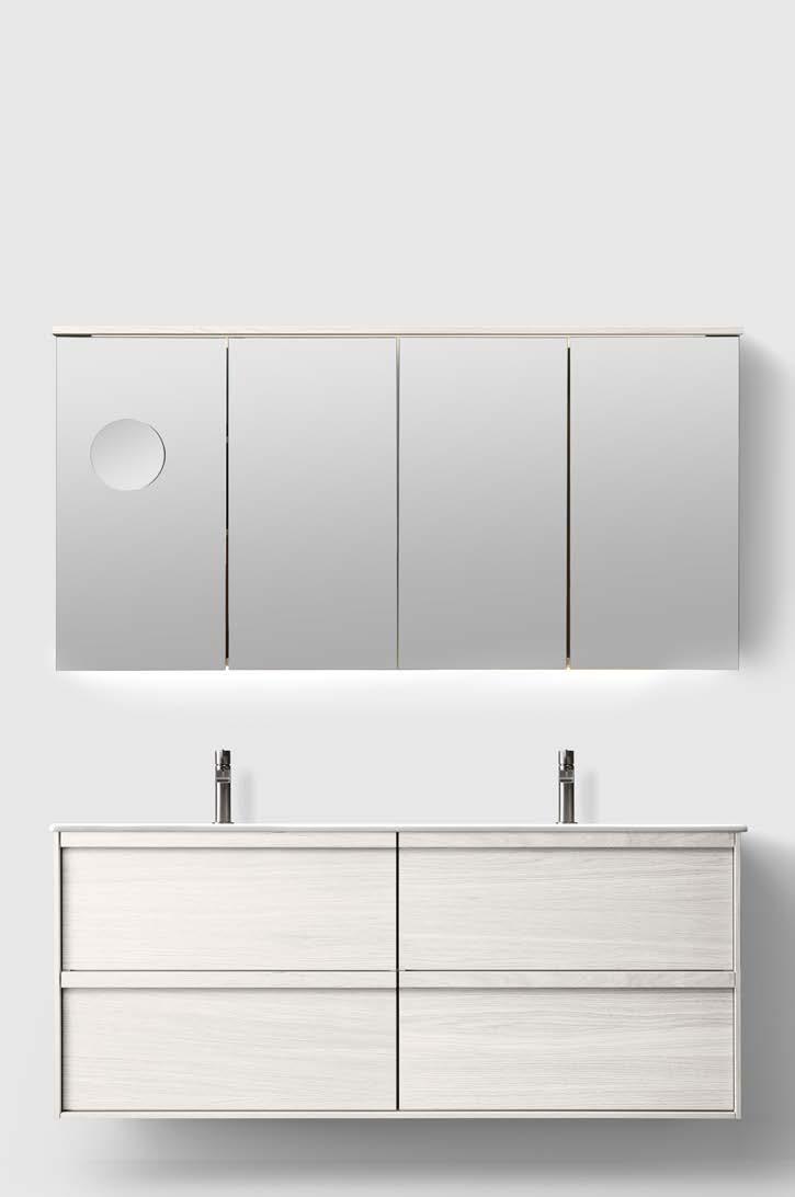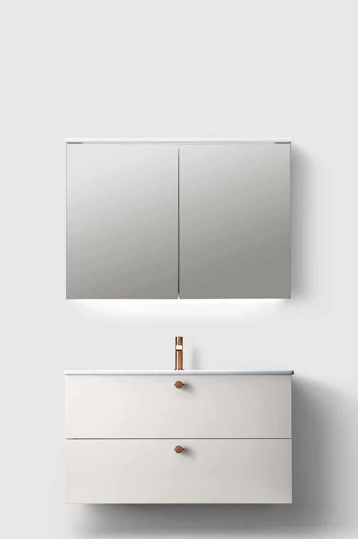 FRAMES AND DOORS FOR CLEANING, WE RECOMMEND USING A DAMP COTTON CLOTH WITH A MILD DETERGENT SUCH AS MILD DISHWASHING SOAP OR REGULAR SOAP. AVOID USING STRONG CLEANING AGENTS THAT CAN DAMAGE THE PRODUCT. BATHROOM FURNITURE IS OF COURSE EXPOSED TO MORE MOISTURE THAN FURNITURE IN OTHER ROOMS IN A HOME. OUR BATHROOM FURNITURE IS ADAPTED TO THE BATHROOM AND MADE OF MOISTURE-RESISTANT MATERIALS BUT IN SPITE OF THIS THE FURNITURE SHOULD NOT BE EXPOSED TO WATER OR EXTREMELY HIGH HUMIDITY. REMEMBER TO ENSURE THAT THE VENTILATION IS GOOD AND THAT THE FURNITURE IS PLACED AT SUCH A DISTANCE FROM THE BATHTUB/SHOWER THAT WATER CANNOT SPLASH DIRECTLY ONTO THE FURNITURE. WET SPOTS, EVEN ORDINARY WATER, ARE TO BE WIPED UP AS SOON AS POSSIBLE. TREAT YOUR BATHROOM FURNITURE WITH CARE, THEN IT WILL PROVIDE COMFORT FOR MANY YEARS TO COME.