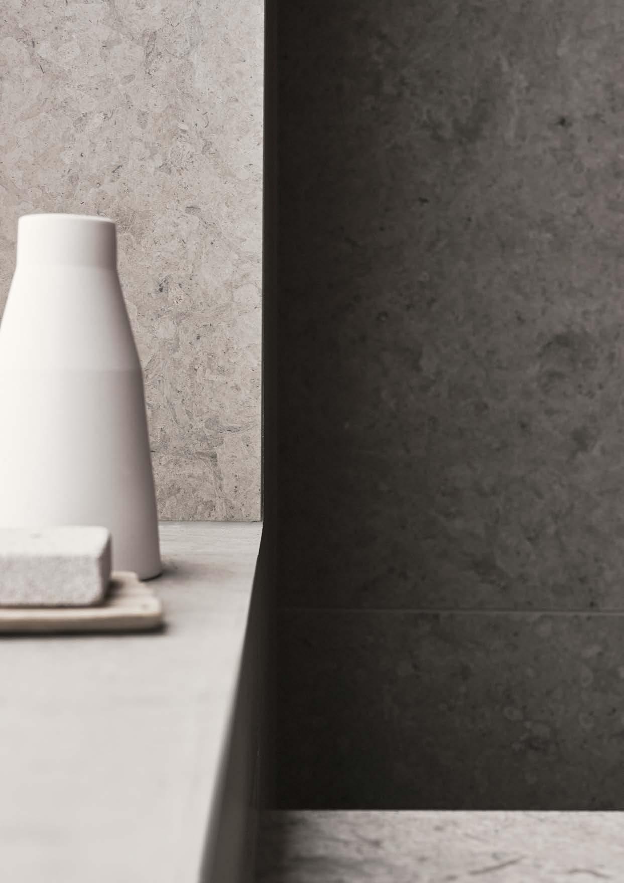 AZUL GREY HONED⁄UNDERMOUNTED PORCELAIN WHITE, 420X270 MM RUNÖ WARM GREY BRUSHED⁄UNDERMOUNTED PORCELAIN WHITE, 420X270 MM