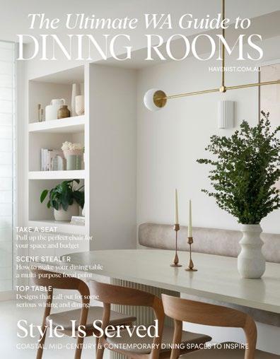 Designing a dining room that warmly invites guests to linger long after the meal is over is an art, and there's no onesize-fits-all approach. If you're seeking inspiration to transform your dining room, explore our exclusive Dining Room lift-out. It's a unique opportunity to draw inspiration from some of WA's most talented creatives, allowing you to tackle the project with style and confidence.