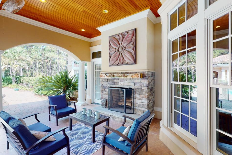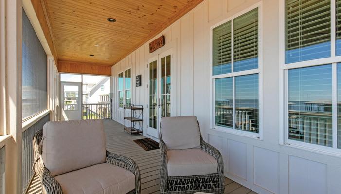 house which includes an additional slip thatcan accommodate a vessel up to 80’ in a protected cove. Some exterior home features include hardie lap siding, hardie shake on porch walls,galvalume corrugated metal roof, Marvin wood clad impact rated windows, mahogany impact rated french doors that open to both front and backporches where you will find Old Chicago brick floors. Interior features include 11’ ceilings, white oak floors throughout, formal dining room, study, openkitchen with Wolf and Subzero appliances, butler’s pantry, living room with gas fireplace, breakfast area with vaulted ceiling, flex space that could beused as media room, gym or bunk room and a separate suite over the garage with full bath and a kitchenette, which would make a great Captain’sQuarters. Relax and enjoy the screened in back porch that