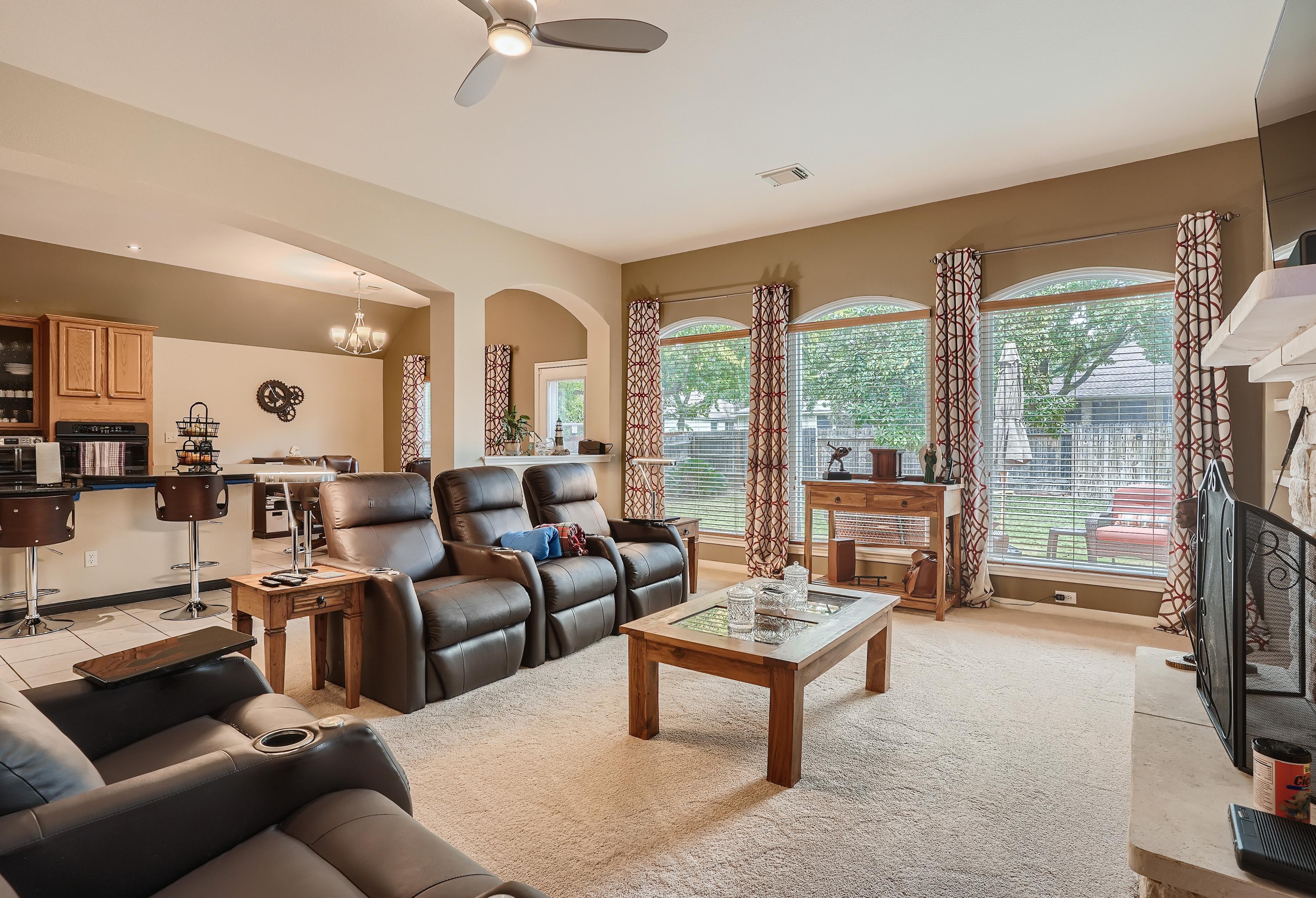 3 BEDS | 2.5 BATHS | 2,542 SQ FT | $493,999. Take a look inside and fall in love with this beautiful home in Cibolo Canyons. Corner lot with full masonry exterior (brick and stone). Stone fence with backyard trees. Granite throughout, extensive ceramic tile, and dramatic entry staircase. High Performance Green Energy System Features Including Foam Insulation in the Attic and Walls to Save On Monthly Energy Bills. Upgrades include nest thermostat, custom-built brick wall, kitchen island and post. 2 electric fireplace, Theater room 5.1 surround sound system w/closet, transitions easily to a 4th bedroom or office. Cullingan water Softener, New Tankless water heater inside the garage, Crown Molding throughout the home, Landscape lighting, Irrigation system, Pergolas on the deck for extra shade. Conveniently located with easy access to US 281 and 1604. part of the Cibolo Canyons HOA, an active master-planned community with access to 3 exceptional amenities, walking trail and JW Marriot San Antonio Hill Country Resort and Spa. Book your showing today!! Washer & Dryer, pool table and 3 tv’s to convey with property.