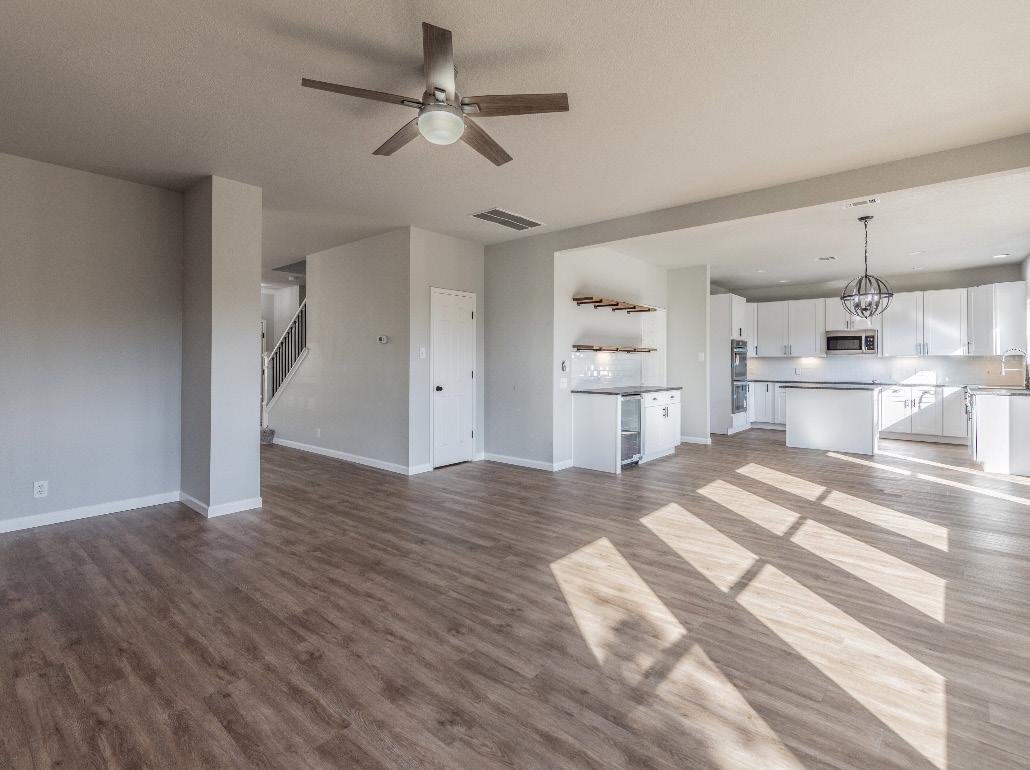 Bright, open concept living with all the upgrades you’ve been looking for! This home really stands out from similar floor plans and is a MUST SEE! Gorgeous kitchen with beautiful freshly painted white cabinets (September 2022), subway tile backsplash, granite countertops, pantry barn door with special stain glass feature, under cabinet lighting, coffee bar and tons of storage. Dining area is open to living area and offers updated lighting with modern farmhouse flare. Spacious living area offers amazing natural light + opens to huge back deck with arbor (added in 2021) and large yard. A wonderful setup for backyard BBQs and entertaining! Luxury vinyl plank flooring installed in common areas in 2020 with common areas repainted in September 2022. Oversized garage with workbench for the handy homeowner! The immaculate Stonewater neighborhood offers community pool, park and sports court. Come claim this jewel of a property before its too late!