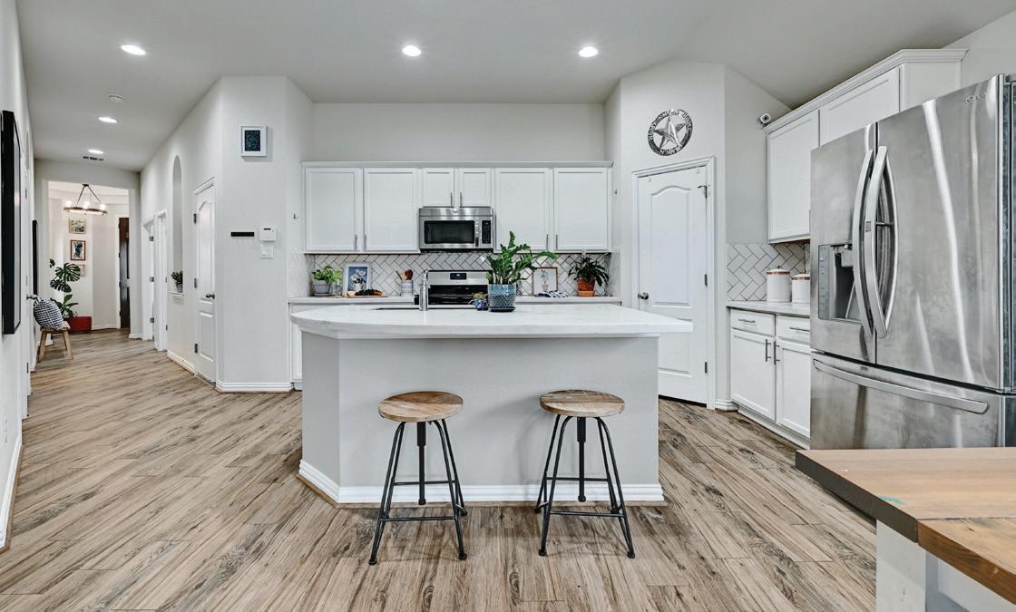 A bright and creative space to strike up the imagination, cultivate relaxation and inspire! Enter through a rotunda foyer and into an open concept floor plan filled with brilliant natural light and wonderful entertainment vibes. Enjoy a dream kitchen updated with Corian counters, white subway tile, stainless steel appliances and tons of storage. Luxury vinyl wood floors throughout the common areas make for easy cleanup and maintenance. A spacious owner’s suite is tucked away towards the front of the home offering high ceilings, HUGE walk-in closet, oversized shower, separated double vanities and tons of charm. Large secondary bedrooms and guest bath are located towards the back of home and offer terrific storage. French doors lead to home office with plenty of space to accommodate an entire household. Large back yard with wood privacy fence, dog run and garden bed is ready for your sculpting and personal preferences. Located in Avalon ... a master-planned community offering planned events, several playground areas, basketball court, walking and biking trails, clubhouse + resort-style community pool with splash pad, toddler pool and covered cabanas. Nearby StoneHill TownCenter offers a wide array of shopping and restaurant choices to include Home Depot, Target, Costco, Dick’s Sporting Goods, Movie Theatre, the famous Torchy’s Tacos, 54th Street Grille, and Chili’s Restaurant. Easy access to multiple area golf courses, toll roads and more! Come home to a true imaginarium in Pflugerville’s Avalon.