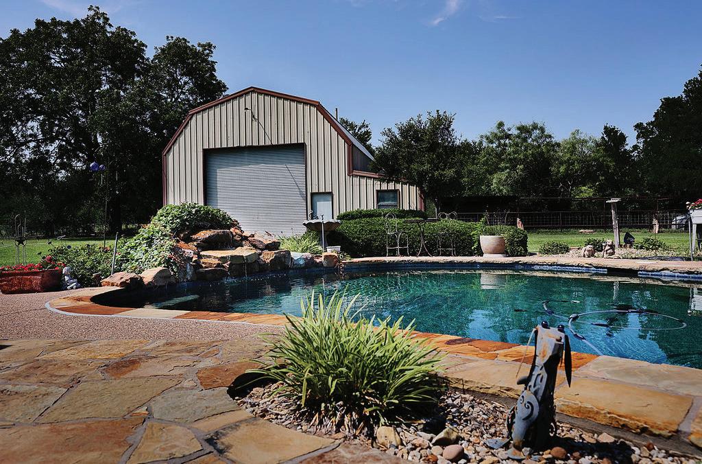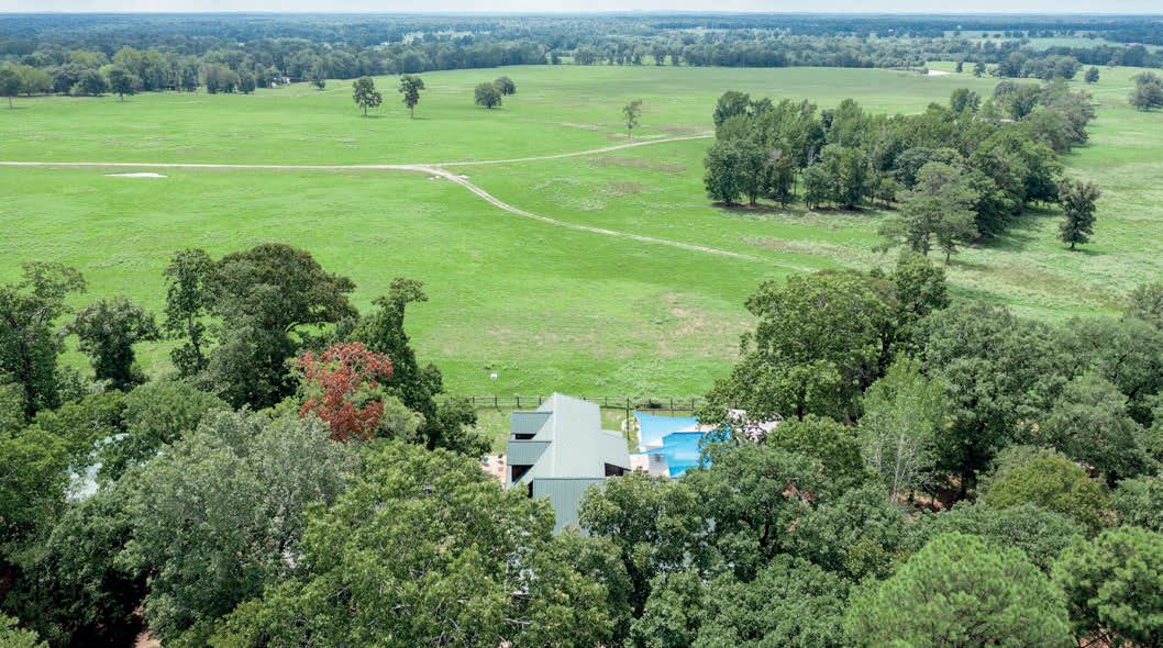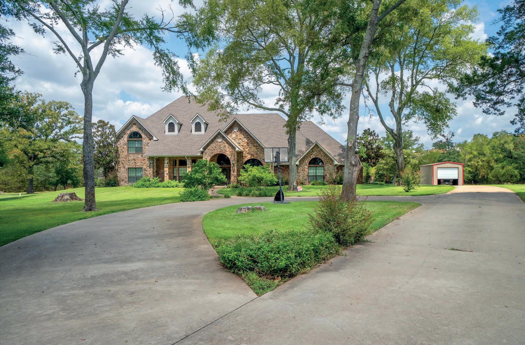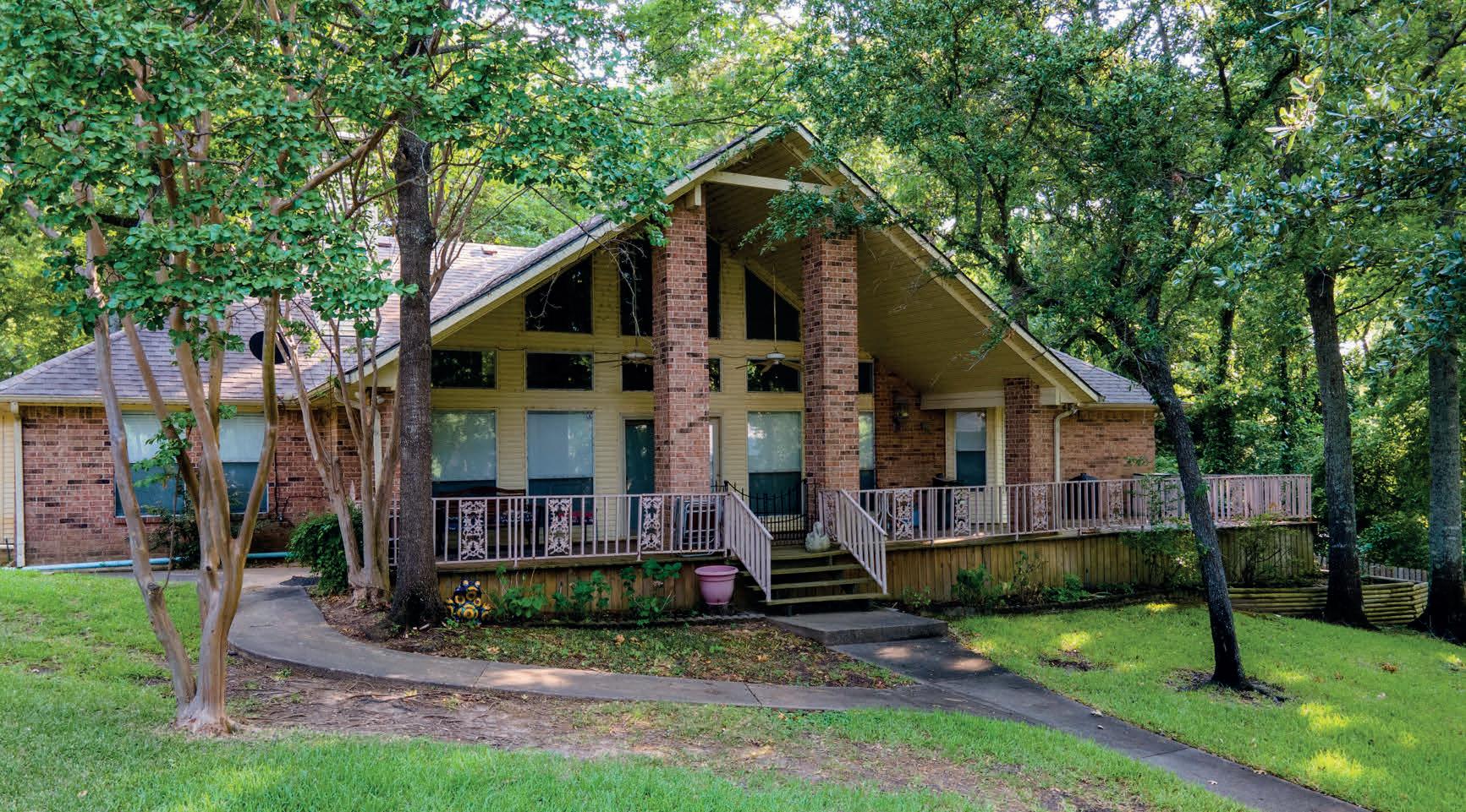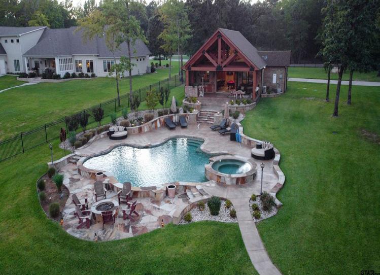 completely separate “suite” (+375 sq ft) with its own exterior access located at the end of the breezeway apart from the house can be used as an office, a “mother-in-law suite” or even for a B&B. The 22,000 gallon, (no water bill here!) saltwater swimming pool is surrounded by generous sized pool deck framed with flagstone matching the large chimney. Beautiful turquoise colored shade cloths (easily removable) protect swimmers from harsh Texas sun. A large pool house with metal roof, ceiling fans and wiring — perfect for accommodating large gettogethers – borders one side of the pool. The property also has a 2-story-high, +2000 sq ft metal utility building which is fully wired and contains 2 one-story insulated rooms above which is a loft providing ample storage for all your hunting gear or Christmas decorations. The ground floor has a workbench. You may have heard that log homes can require more maintenance; but, because this log home has no chinking, maintenance is substantially reduced. Although in the country, this property is easy to get to. It is conveniently located at the county seat and only 4 miles from I-30. The house sits far from the public road at the end of a long drive running through your own forest. Although this property is nearly 13 acres, mowing is quick because more than half is forested with oak, pine, sweet gum, aspen and pecan trees. This is truly a magical property.