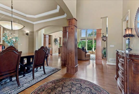 The entry level, 2nd floor, features the following: Formal dining room with coffered ceiling and 4 craftsman inspired columns