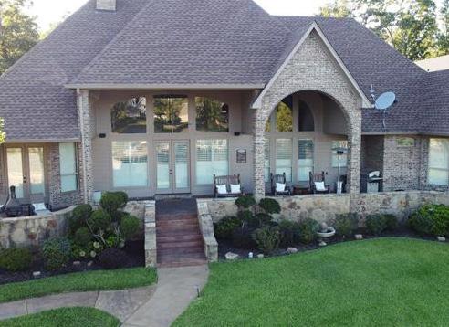 This is the Ultimate Country Estate - A waterfront home with 3,000 ft of shoreline on Richmond Chambers, the best lake in Texas. The main home has 9,540 sq ft of the finest construction. The 3,298 sq ft Guesthouse has 4 bedrooms, an open kitchen, living and dining rooms, front porch and an attached 4 car garage. The main home has a 2 story Great Room with a massive stone fireplace, 4 bedroom suites, gym, game room, screen porch, study and much more. The custom stable is heated and air conditioned and has 4 European style stalls, 2,165 sq ft, wash and tack rooms and a 671 sq ft apartment. For outdoor entertaining there is an outdoor living area, huge pool, tennis court, all overlooking the emerald green lawns irrigated from the lake. Property conveys with 18 additional lots. There is a boat house, jet skis are included and tractor, ATV’s, yard tools, mowers, and the custom furniture is negotiable. There is a dedicated 5 G tower with high speed WIFI.