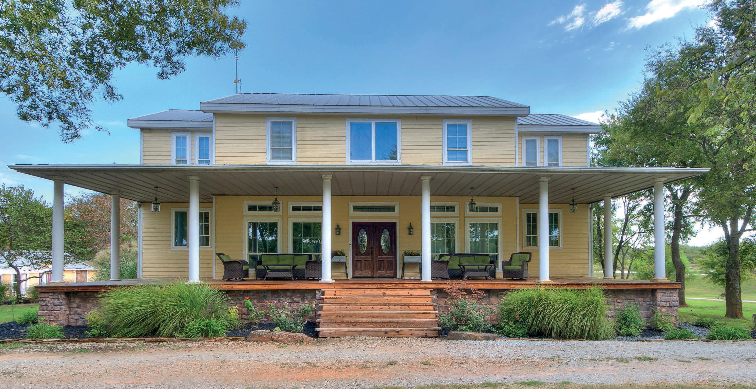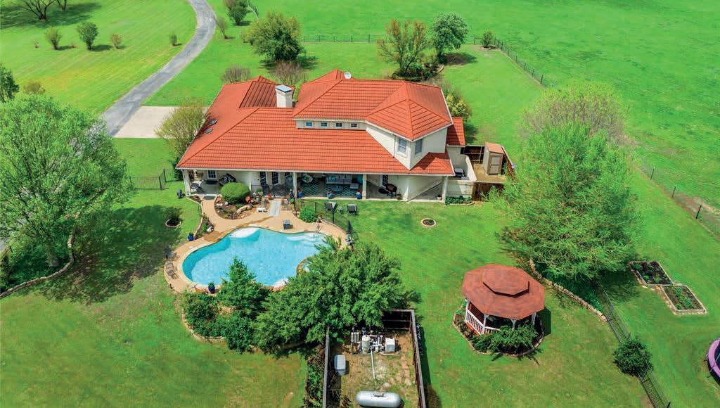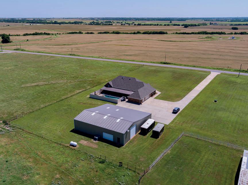 This Homestead is overflowing with serene views of the property & wildlife. Stunning is an understatement for this 3000 sq ft modern design home, perfectly situated on 16+ manicured acres. Every corner of this estate is blessed with meticulous planning and flawless architecture offering absolute peace and tranquility or elite entertaining options. Timeless high-end finishes are diffused throughout from the reclaimed wood mantle to the English cast iron soaking tub. Notable features include: a true butler’s pantry, lounging porch with access to the Owner’s Suite, full house generator, whole house humidification system, Stateof-the-art technology hub (turntable ready for vinyl albums too), electronic shades that cover the prominent 9ft windows, dimmer switches throughout, plus a 300 bottle wine fridge. Outside is just as prestigious, with complete perimeter fencing, pipe entrance with automatic gate, oversized pond, and 25 fruit trees to start your homesteading journey. Located 1 hour from OKC and 2 hours from Dallas. Call/text for a full list of amenities and drone footage of the property 405.268.1808.