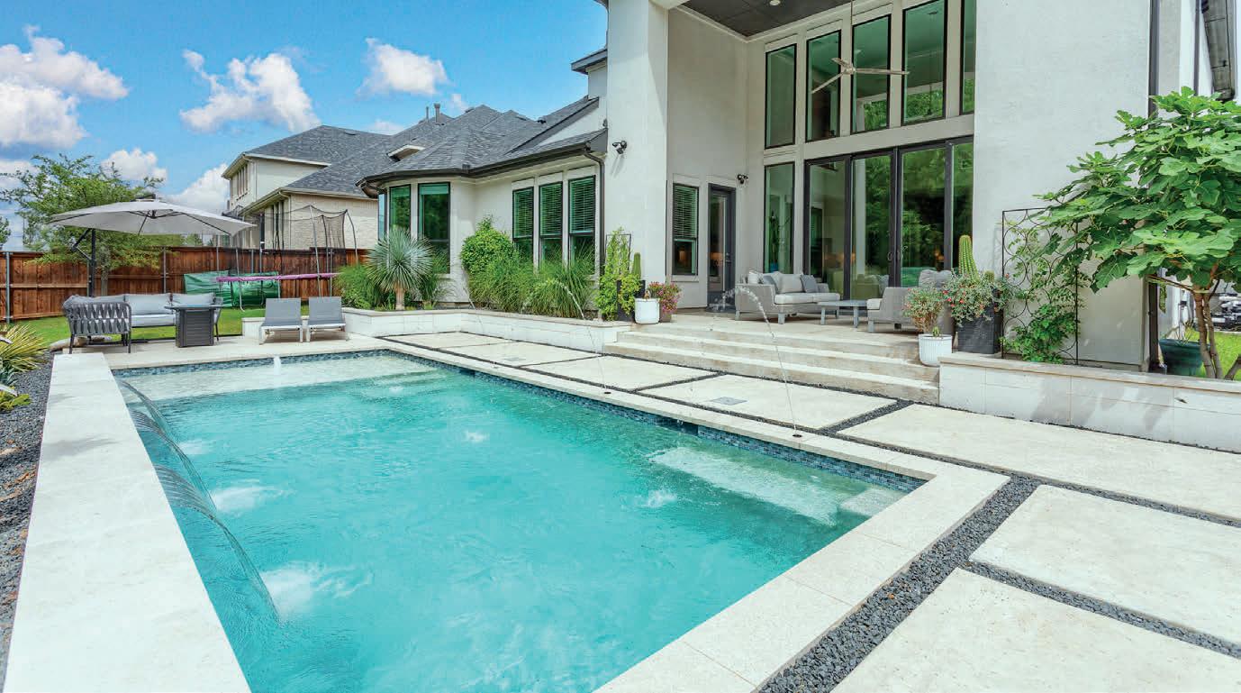 in love with the kitchen, featuring walk in pantry, 5-burner gas stove, double ovens, new built in fridge & Bosch dishwasher. Laundry room is easily accessed via the Owners Suite walk in closet or the hallway. Relax in the pool & hot tub, then enjoy time with family and friends under the covered porch by a cozy fire. Garden area is