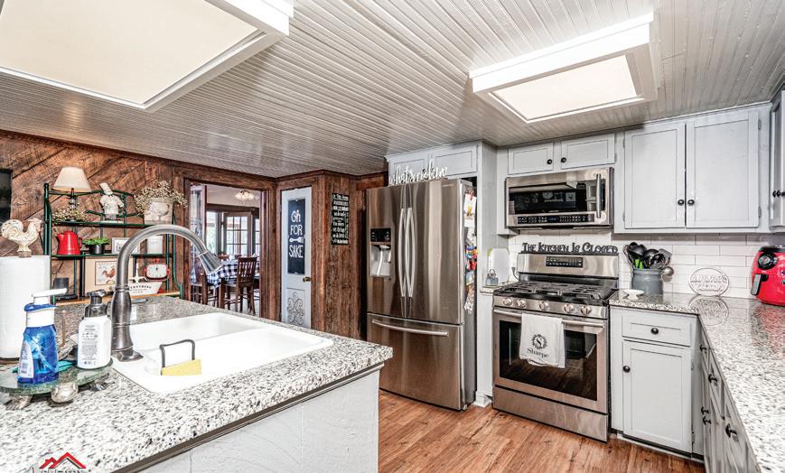 covered front porch, playhouse with electric, stocked pond, 40x50 insulated shop w/ automatic door, second storage behind barn previously used as