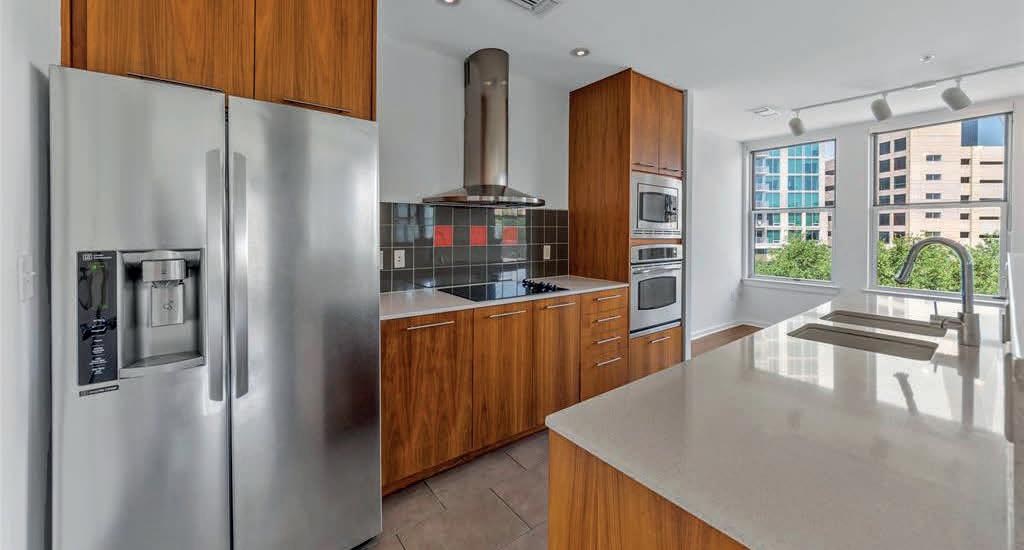 counters, appliances, built in fridge, oversize island & lg. walk-in pantry. Spacious Master with a oversized walk in closets, his and her granite vanities, oversize tub & shower. Balcony is perfect for entertaining and overlooks the pool as well as great downtown views. Building amenities include on site concierge, fitness center, pool and two