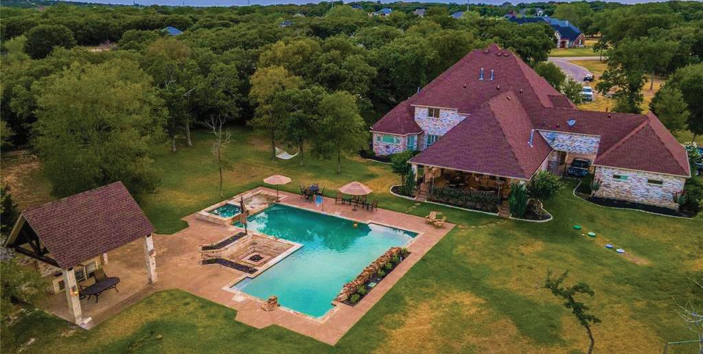 Wow! Remodeled Mediterranean, Resort Lifestyle Home uniquely designed. 1+ acre centrally located between Dallas & FTW. A short drive to many entertainment venues: Cowboys Stadium, Six Flags, Hurricane Harbor, Globe Life Ballpark, & Texas Live! Open floor plan w light & bright updated kitchen, flooring, lights, hardware, paint, and MUCH MORE! The kitchen offers lots of counter space & storage along w multiple living areas: sunroom, bar, media, & family rooms. Relax in the oversized downstairs master with large sitting area +FP, & fully remodeled spa-like master bath. Study or guest bedroom downstairs +full bath directly across the hall. Upstairs:2nd master bedrooms, 1 ensuite + 2 other bedrooms + large WIC closets, one offering a huge cedar closet the other a second closet, & 2 split bedrooms sharing a bathroom. Upstairs gameroom lead to the balconies overlooking a sun filled heated pool & spa, outdoor kitchen & bar, canal views, & private rock retreat. New Furniture, never used, conveys.