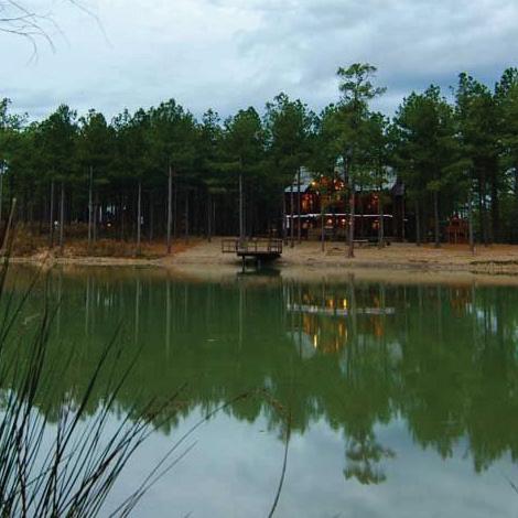the back deck features a fantastic outdoor kitchen with bar that overlooks the pond and a hot tub! The grounds around the cabin offer picnic tables, a fire pit, a playground for the kiddos, and a fishing pier.