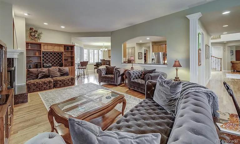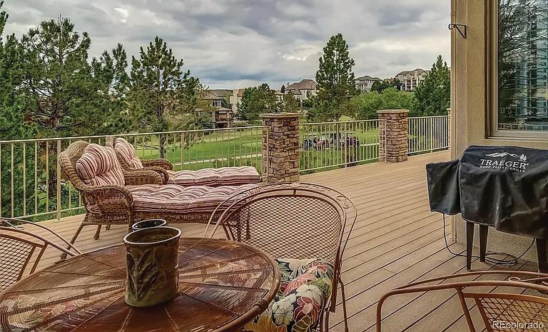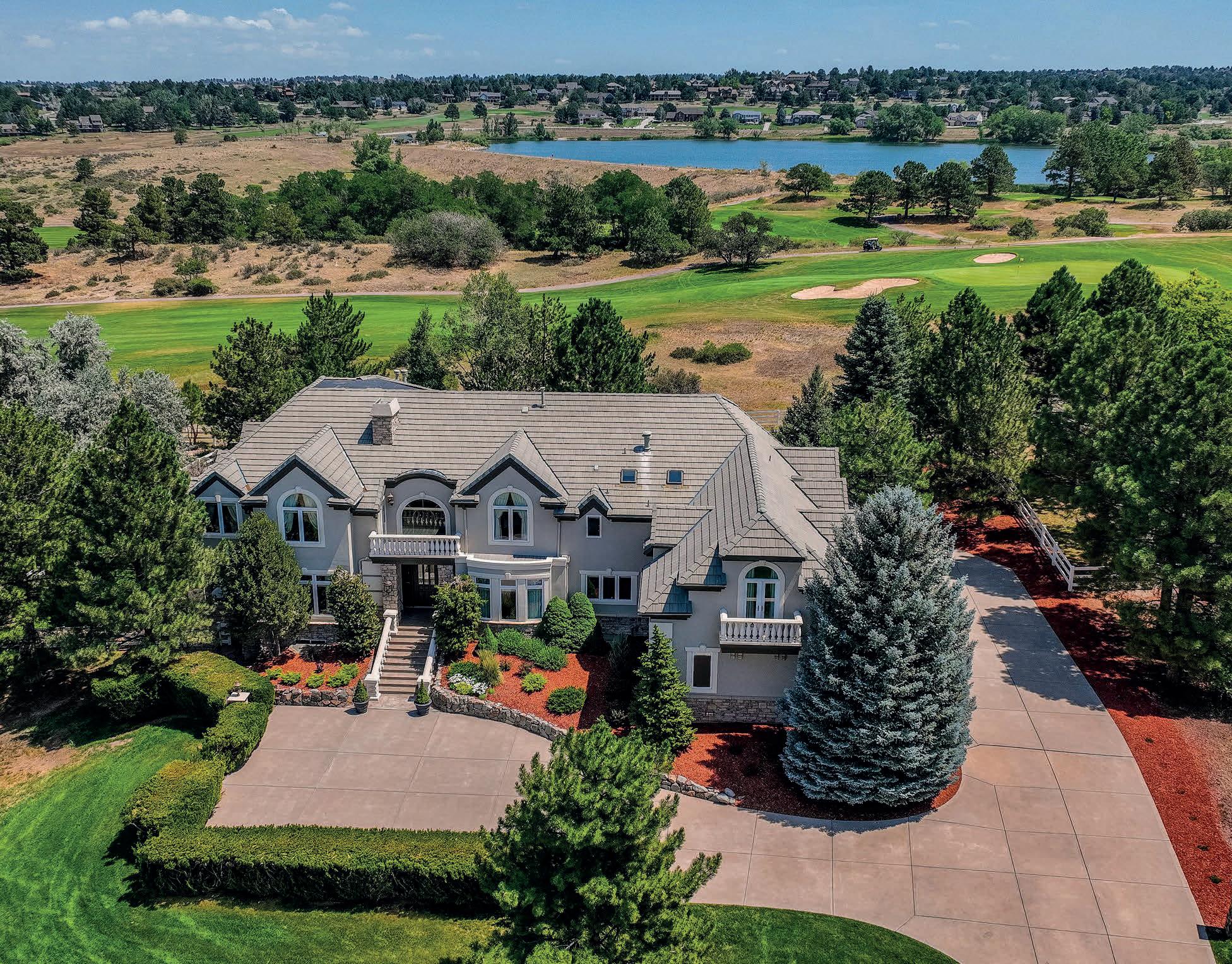 This beautiful & spacious 5 Bed, 6 Bath Custom home is in the highly sought after, gated community of Heritage Estates in Lone Tree. The home is conveniently located & backs to the 14th fairway of the Lone Tree Golf course. You are immediately drawn into this home by the Dynamic Entry Foyer & Circular Staircase, Soaring Ceilings & Custom Chandelier. This home is an entertainer’s delight as well as the perfect family home. The main floor consists of both Formals, a huge Family room, spacious Gourmet Chefs Kitchen w/Breakfast nook. Glass French doors leading to a Private Office w/Built-in Bookcases. Oversized windows w/Plantation Shutters provide tons of natural Colorado light. The main level provides easy access to the expansive deck which overlooks the spacious yard & Golf course behind. Upstairs you will find a Massive Primary Suite w/Sitting area, fireplace & Private Deck off the back - Perfect for relaxing. The master has a huge 5 piece Bath w/separate vanities, Oversized Custom Walk-in Closet which is also carefully designed as a Safe room. The upper level also consists of 3 additional secondary bedrooms, each with ensuite Baths and Walk-in Closets. The Lower Level was recently finished and set up as a separate & private living area which Includes a 2nd full Kitchen, Family room with the rock lined gas fireplace, huge Family room, Dining area, Bedroom & Separate large 5 piece custom Bath and ample storage. Perfect for a Motherin-Law suite or rental. The Walkout provides easy access to the huge patio below & the expansive backyard. This home also has Tons of Storage, 3-Car Side-load drywalled Garage which is insulated w/ custom Storage Cabs, Security System w/new Cameras, Sensors & Lighting, 5 gas Fireplaces. The Private lot consists of Mature Trees, Sprinkler System, a huge backyard and an invisible pet fence system. This home is loved & well cared for and is a must see - Convenient to everything.