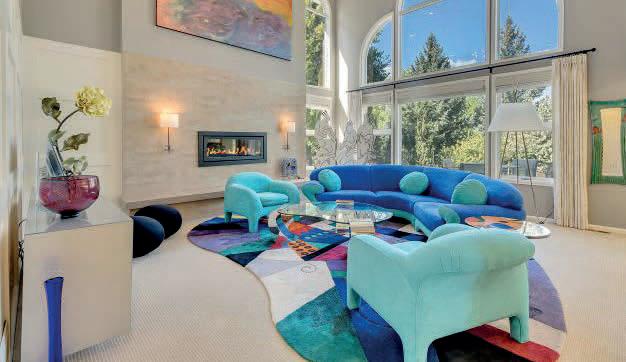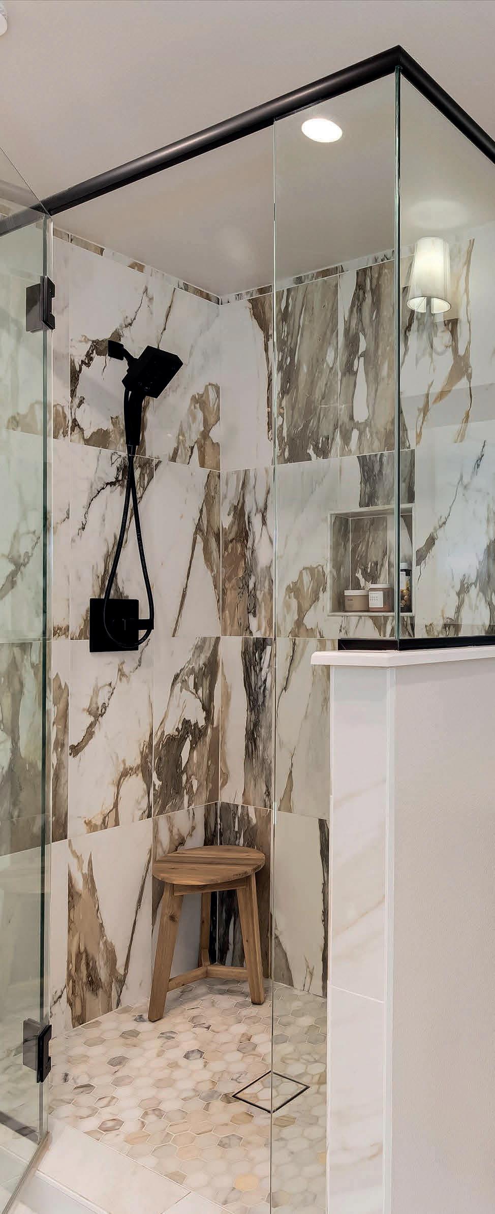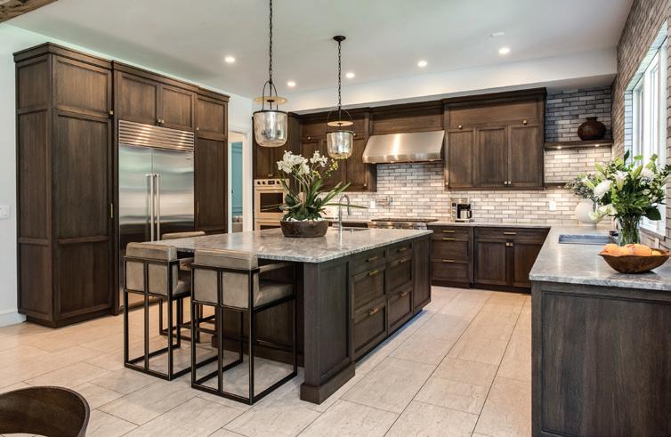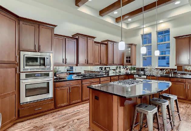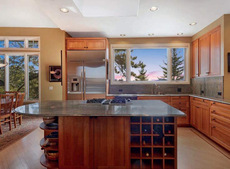 ceiling beams, steel, stone, and glass; all working in concert to create a casually elegant setting which exudes stylish livability. This