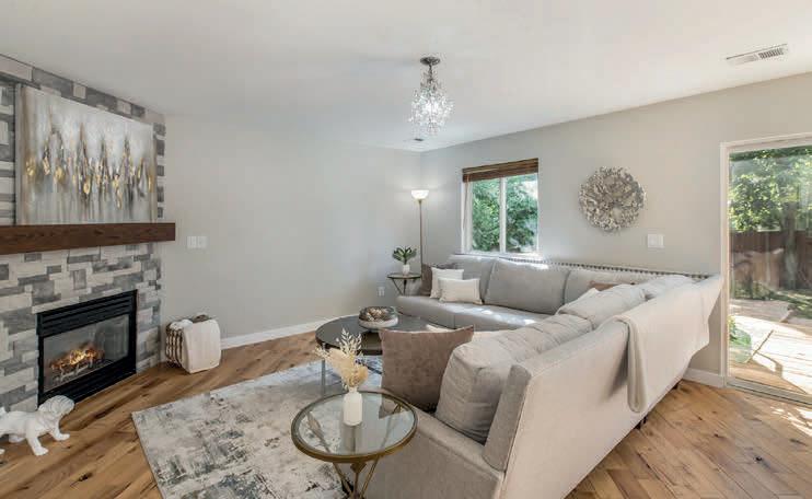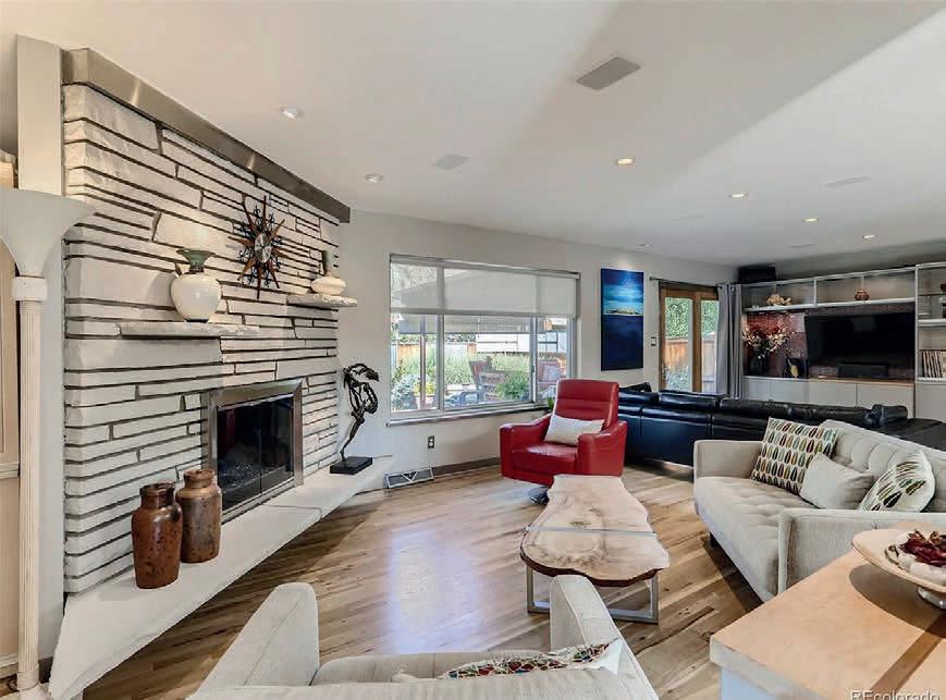 contemporary remodel of a tri-level home in award-winning Cherry Creek Schools. Open floor plan, vaulted ceilings, custom kitchen with soft close drawers, huge island with seating, quartz counters, farm sink, and stainless JennAir appliances. Wide plank luxury vinyl floors and newer carpet. Remodeled bathrooms throughout. The primary bedroom has vaulted ceilings, motorized blinds, an ensuite bath with double sinks, a gorgeous walk-in shower, and a generous walk-in closet. Finished basement with wet bar, rec room, 3/4 bath, laundry room and free-standing Sauna. Fully fenced grassy backyard with mature landscaping and a covered patio. New or newer HVAC and water heater. Close to Cherry Creek State Park and in a neighborhood with walking paths, a park, playground, and tennis courts.