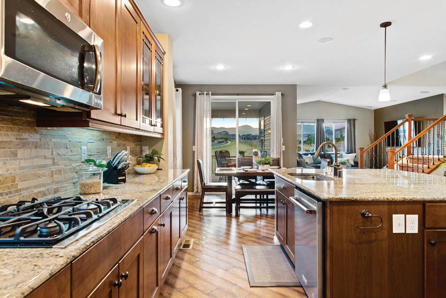 easily finish a 4th or 5th bedroom in the loft area or the basement! There is a powder room on the main level as well as a large study. The primary suite is luxurious with an extra large and functional en-suite offering a dressing area and separate vanity, his/hers closets, and a steam shower! The gas fireplaces in the great room and lower level family room will help you get warm on those cold winter nights. A wine cellar and lower level bar and kitchenette is great for additional entertaining space. Potential in the 1,500SF of unfinished basement space or just storage! No need to store anything in the garage - keep that just for cars. No lawnmowers as HOA takes care of that! Just relax on your covered back patio overlooking the mountains and enjoy life!! Take a look today! It will not disappoint.