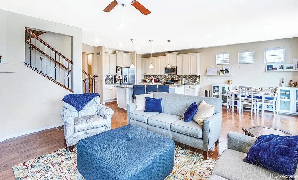 Commerce City Stunner full of sleek designer touches, this 3 bedrooms 2.5 bathroom single family home will be sure to check all the boxes. Upon entry from the welcoming foyer you are invited into a designer’s personal dream home. The main floor is flooded with natural light and ample space to seat 10+ guests, followed with a stunning kitchen with designer hardware and a modern white tile backsplash, high end espresso cabinets with soft close and granite countertops, elegant designer lighting just continue the thoughtful design. Enjoy your private retreat in the side yard with no detail spared. This home is certainly the most upgraded single family home in the entire community.