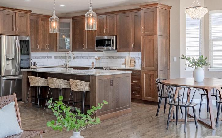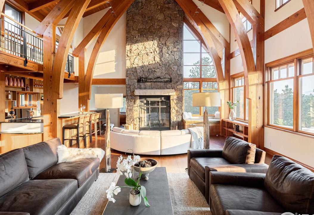 A fantastically renovated 3264 square foot cabin has become a home with 6 bedrooms and 3 bathrooms boasting open floor plan living. Delightful western finishes abound, with hickory wood floors covering the main and historic Dodge City, Kansas reclaimed bricks on the fireplace and accents throughout the house. The great room has a vaulted and timbered ceiling where a cozy wood fireplace beckons you. Every room has been lovingly updated with classic rustic finishes in keeping with its surroundings. All of the doors and wood finishes downstairs have been lovingly designed and constructed of reclaimed barnwood.