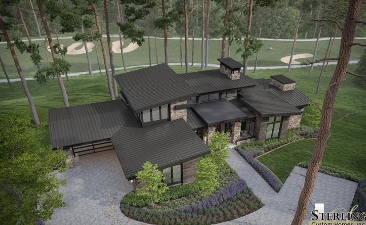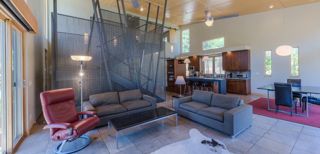 the quiet Cul-de-Sac street. The distinctive Architectural style complements the natural setting. Boulders quarried from the site are repurposed to line the driveway entrance and define the Basketball Court, Putting Green and Fire Pit areas. Designed with indoor outdoor living in mind the wrap around deck and patios provide incredible views and entertaining opportunities day and night. This home is characterized by clean lines and natural materials. The incredible array of Windows allow light and nature into each living area for year round enjoyment. The rugged natural beauty is complimented by the sophisticated