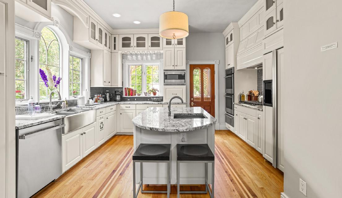 meets modern inside and out, with a wrap around front porch with original pine floors, stunning millwork, classic sitting room,