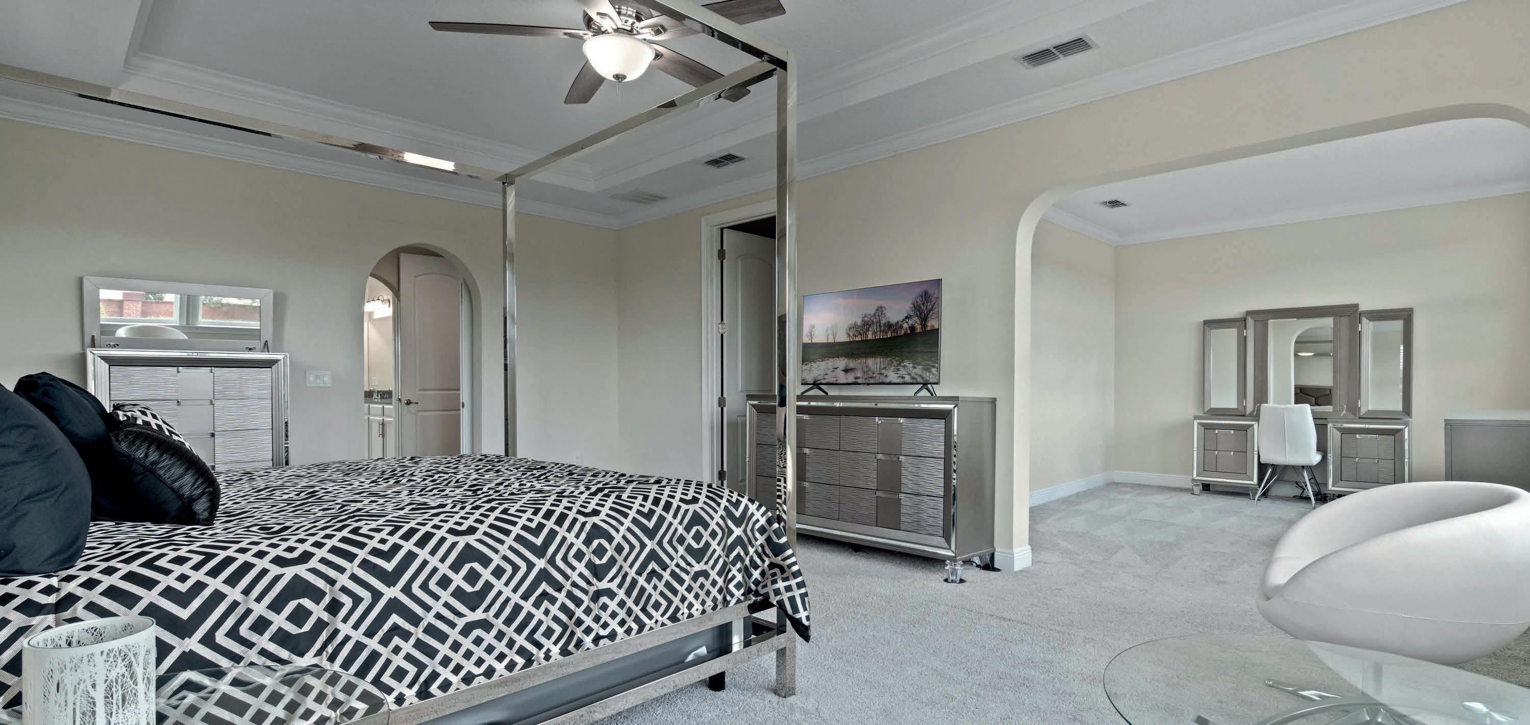 This home features two ensuite bedrooms, one downstairs, and one upstairs, perfect for mother-in-law and/or guests. The downstairs ensuite is hidden behind a CUSTOM BUILT-IN SECRET DOOR with its private access to the backyard. Going upstairs in a beautiful iron rail staircase you will find a bonus area with closet/pantry for family entertainment and much more. Double doors lead you to a dreamy Master Suite featuring a well sized/extended sitting room, his and hers walk-in closets, and a massive master bathroom with oval tub surrounded with gorgeous tiles, his and hers vanities, extra-large glass enclosed tiled shower with long tile bench seating and dual rain showerheads. An oversized bedroom with walk-in closet and an additional well sized bedroom completes the upstairs of this spacious home. This opulence home is fully automated with the touch of your phone. Google home system will turn on lights, monitor home and all Samsung products. It will let you know when the dishwasher is done, stove is on, laundry is done etc, all from the touch of your phone. For security, eight monitored internal and external security systems with Ring camera at front door. This spacious and smart home encapsulates the height of luxury and ease.