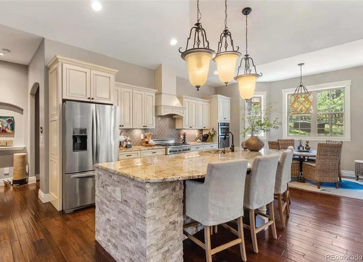This home is perfectly appointed on the interior with high end finishes like quartz countertops, high-end flooring, and thoughtful touches to entice the most discerning buyer. This floorplan is exceptional, dual staircases on both of side of the large mud room off the garage, two pantry’s, private main floor office/study perfect for those who work remotely. The family room is complete with gas fireplace for cozy winter evenings. Entertaining is a breeze in the gourmet kitchen complete with eating area and private dining area, huge quartz island with farmhouse style sink, beautiful stainless appliances and gas cooktop for the chef in the house. Upstairs there is a bonus room for that additional space for other activities. The primary bedroom has an enormous walk-in shower, beautiful stand-alone tub and his and her walk-in closets. The additional three upstairs bedrooms are en-suites, including their own bathrooms. A recent custom finished basement is complete with an additional bedroom, bath, wet bar and gas log fireplace perfect for game day! Situated on almost a quarter acre lot, close to the award-winning Three Creeks K through eight school just a few blocks away. The community of Candelas is an outdoor active lifestyle community, offering several activities including a farmers’ market, movies in the park, holiday events. Plus, two clubhouses, tennis courts, two pools with fitness center and much more. There are many ways to get yourself and your family involved with your community. This location is ideal, only about a 15-minute drive to Boulder and Golden, and a 1-hour drive to world-class ski resorts that Colorado has to offer.