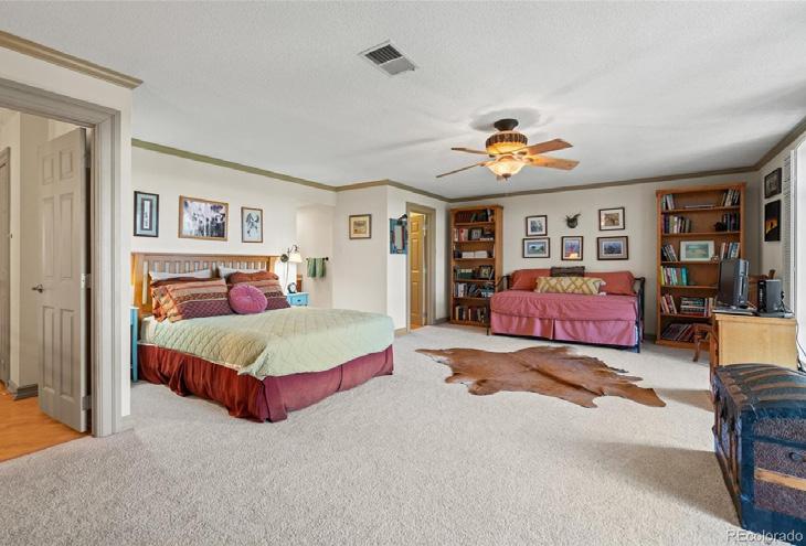 for spectacular sunsets over the front range or star gazing around the fire.. (wired for hot tub) The upper floor features 2 primary suites and a 3rd bed and bath. Retreat in the luxury suite sitting niche, bedroom and luxury bath with huge walk-in closet and deck. (Sitting niche could be converted to another bedroom.) Head down to your large finished daylight basement for movie night on your large screen tv in beautiful maple built ins. The basement is also wired for workout equip to complete your bonus space. Basement bed/ bath make for good guest quarters. Buyer to verify all information.