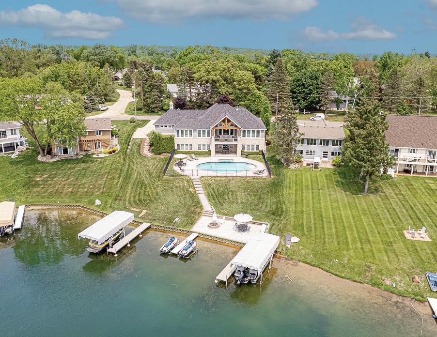 Beautiful year-round 2 home estate & private retreat on little Wolf Lake.Thoughtfully built new & meticulously curated by the original owners since 2007,this stunning property exceeds all expectations.Wolf Lake is a 106-acre all sports lake on a lovely 7 lake chain.Nantucket-inspired & light-filled design with multiple structures & outdoor spaces on 200 feet of south-facing shoreline with new sea-wall, hard sand bottom & large wood dock for all water toys.Main house has 4 beds & 4.5 baths w/ exceptional finishes in an open layout well-suited for guests & gatherings.Wideplank oak floors, imported tile & vintage barn wood beams/trim create a warm & inviting interior. Incredible chef’s kitchen with custom cabinetry, natural stone counters & commercial-grade KitchenAid appls. Award-winning exterior includes bluestone patios & tiered lakefront landscaping by KC Runciman in Ann Arbor with a glorious combination of perennial planting & seasonal colors. Guest house has same high-quality design & finishes with 2 beds & 1 full bath and privacy in mature setting. The property includes two garages, one is a two-story new-build barn with room for multiple cars/trucks, boats & equipment & a second floor recreation/office.