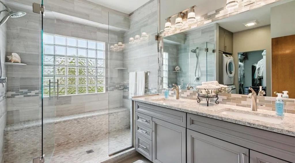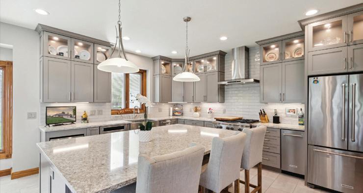 This custom ranch home is a luxurious retreat situated on the tranquil shores of Lake Erie. With almost $200k in recent updates, this executive home is the epitome of style & sophistication. As you step onto the porch to take in the breathtaking sunrise over the lake each morning, you’ll feel like you’re living in a dream. The home’s great room is a stunning space with soaring ceilings, ample Pella windows that let in plenty of natural light, & a beautiful renovated stone gas fireplace. The open concept design flows seamlessly through the dining room, which features a co ee bar, and into the magnificent kitchen. The new kitchen is a chef’s dream, with cabinets that reach all the way to the ceiling, new quartz countertops and Kraftmaid cabinets, full wet bar, massive island with pull-out cabinet drawers, new high-end stainless steel appliances, with an impressive amount of storage & workspace. The primary suite is a true oasis, featuring french doors that lead out to the patio & a new ensuite bathroom that will take your breath away. The bathroom features a huge glass-enclosed shower, a primary closet so spacious you might mistake it for a fourth bedroom, & laundry facilities conveniently located right in the primary suite. The home’s o ce/den is a generous space boasting wood floors & a spectacular view of the lake. The oversized three-car garage has additional workspace & a full staircase leading to the attic. The attic is a wood-floored space designed to function as a second floor or provide more storage than you could ever need. Recent updates also include new electrical, copper plumbing & a tankless water heater. The home’s yard is just as impressive, with a vast cement patio area & ample space for play and relaxation. This home truly has it all. You won’t want to miss your chance to see it for yourself. Book a private viewing today & experience the luxury and beauty of lakefront living.
