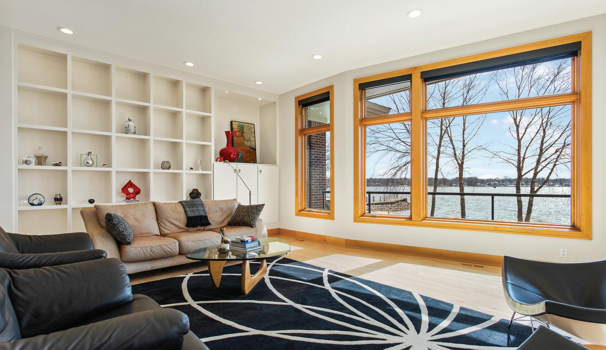 4 BEDS | 6 BATHS | 3,658 SQFT. What does “LOCATION, LOCATION, LOCATION” mean? Without hesitation this is it! Panoramic views of the entire private All Sports Lower Straits Lake – approx. 175 +/- lin ft of water frontage – approx. 1 acre – breathtaking views from all windows – glorious sunsets - sandy bottom lake great for swimming – low tra c dead end street. Custom designed by David Lubin Architects – this sprawling ranch has massive floor to ceiling windows that allows you to appreciate every season.