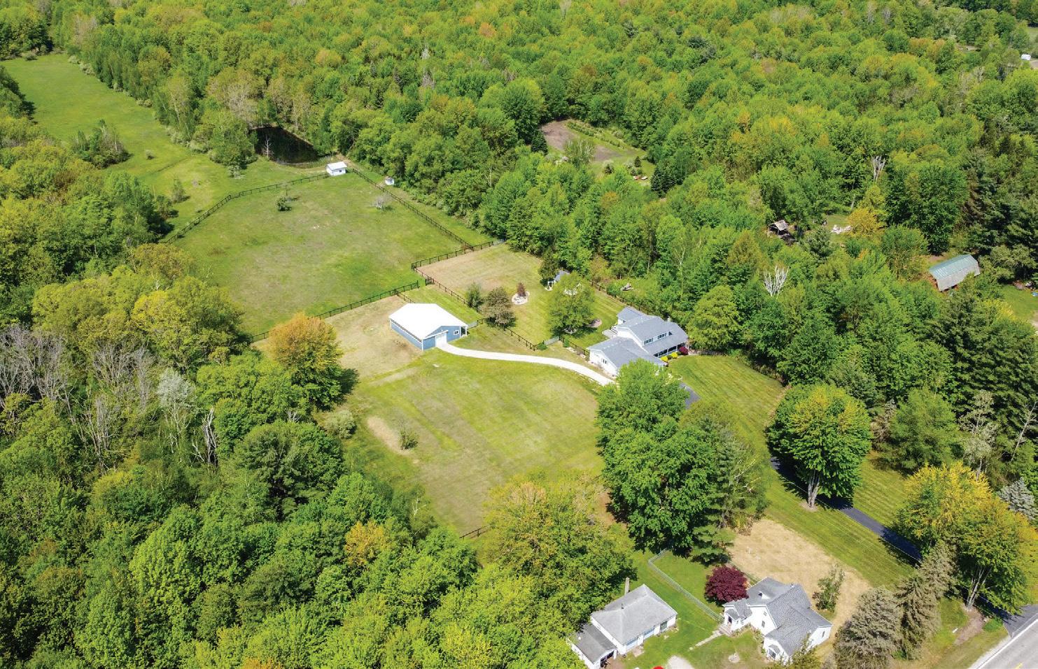 the waterfront and amenities of Harbor Springs, Black Forest Farm is comprised of approximately forty-five acres, a four- bedroom main residence, two-bedroom carriage house, and a nine-stall barn. This is a truly unique offering that is irreplaceable in the Harbor Springs area. The main residence and carriage house were constructed by one of the area’s premier custom builders in 2001, and the property has remained under their care. Amenities of the main house include primary suites on both the first and second floors, custom kitchen, formal dining room, library, upper-level billiards room and bar overlooking Little Traverse Bay, fireplaces, elevator, and a two-car attached garage. The carriage house includes two en-suite bedrooms, covered porch, caterer’s kitchen, and four-car heated garage. Both feature several outdoor seating areas perfect for evenings spent looking out at the bay or the surrounding woodlands. The land itself consists of long-standing pines and hardwoods, beautiful pastures, and unmatched privacy. The fenced drive winds for over a quarter-mile beyond the picturesque barn and paddocks before arriving at the main residence and carriage house. Black Forest Farm is an idyllic private estate on the outskirts of one of Michigan’s most beloved waterfront towns.