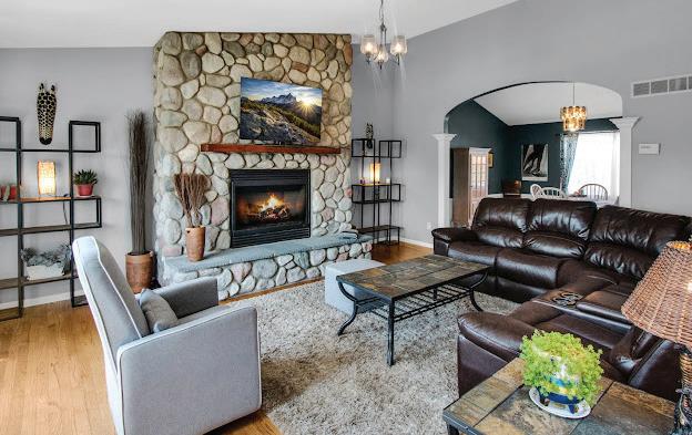 Pride of ownership is apparent in this gorgeous home in the desirable Verndale subdivision. From the gourmet kitchen to the indoor basketball court and theatre room this is truly one of a kind. As you enter through the foyer you are greeted with ample space for your whole family – the large, updated kitchen is sure to please the chef in your life, designated dining room for the holidays or just a special dinner and beautiful living room with tile fireplace. The large deck off of the kitchen is great for your guest overflow or to just enjoy your morning coffee. A built-in office workspace perfect for those working from home is just another bonus room in this home. Upstairs you will find the primary on-suite with walk in closets, soaking tub, and tiled shower. Two other spacious bedrooms share a Jack and Jill bathroom. On the lower level you will enjoy the theatre room, sauna, and your very own basketball court as well as lots of room to stretch out and play or relax. In all the home boasts over 4000 sq ft of living space with 4 bedrooms and 3 baths. The three-car attached garage has plenty of room for your extra vehicle or outdoor gear with an adjoining mudroom with storage lockers and seating. Enjoy great views and privacy in your backyard without neighbors directly behind you as no one is permitted to build there. There is also an underground invisible fence perfect for letting the dogs run! Offered at $785,000