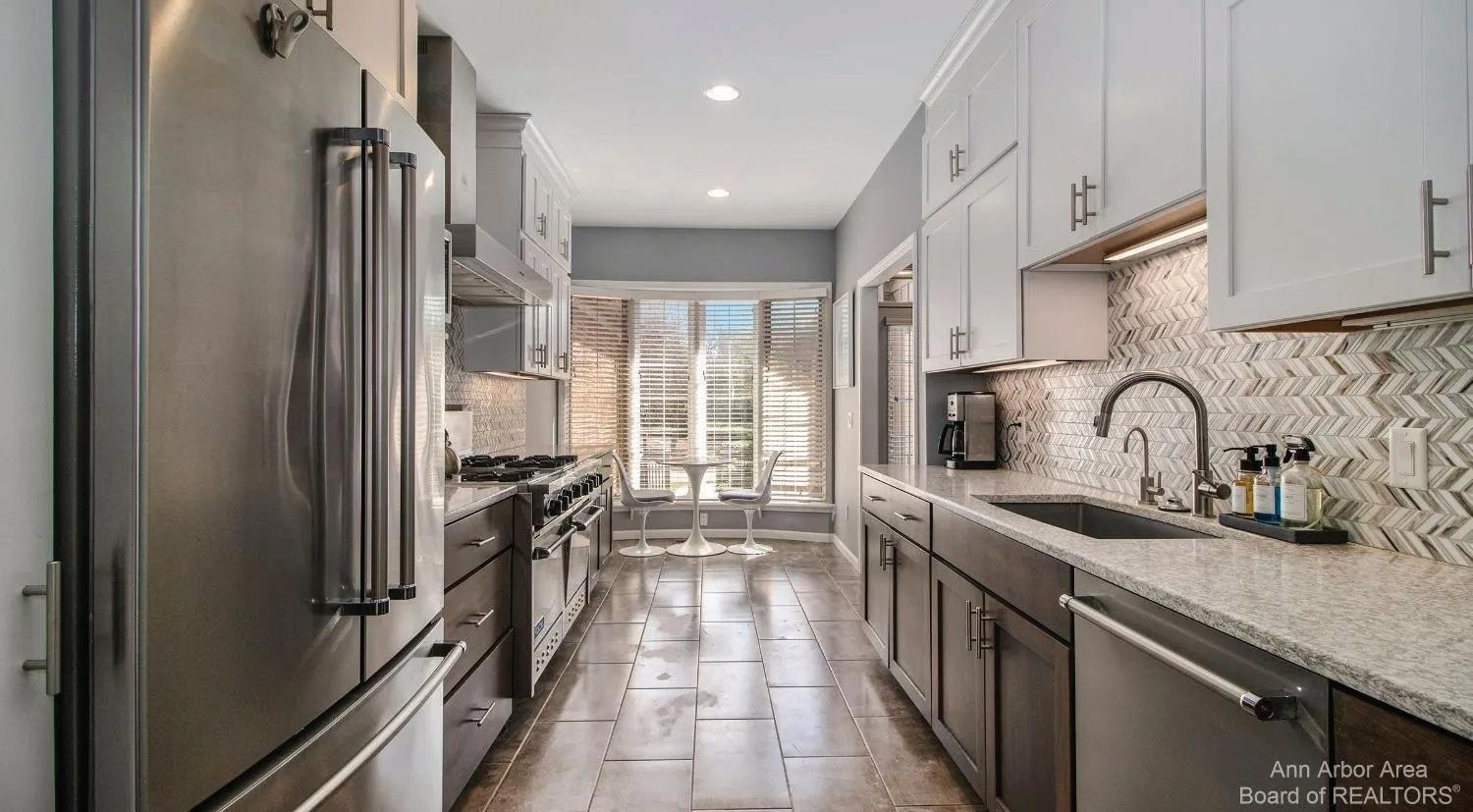 Come home to luxury in this boutique new construction building located in Ann Arbor’s Kerrytown neighborhood. With a total of ten units, this building is private condo living at its best. This specific home has over 1650 s.f, 9-foot ceilings, wide plank flooring, gas fireplace and an additional 262 s.f of private outdoor space. With three walls of windows you will LOVE the natural light. The chefs dream kitchen includes custom cabinetry, expansive quartz countertops and Thermador appliances. Enter into the primary suite and you’ll be immediately taken by the thoughtfully designed bathroom with heated flooring, rain shower options and more! This residence comes with a secured garage parking space. One minute ride to the newly created tunnel entrance to the B2B, a three minute walk to Kerrytown and Zingermans, and a five minute walk to downtown and U of M Medical. This development is the definition of walkable luxury living.