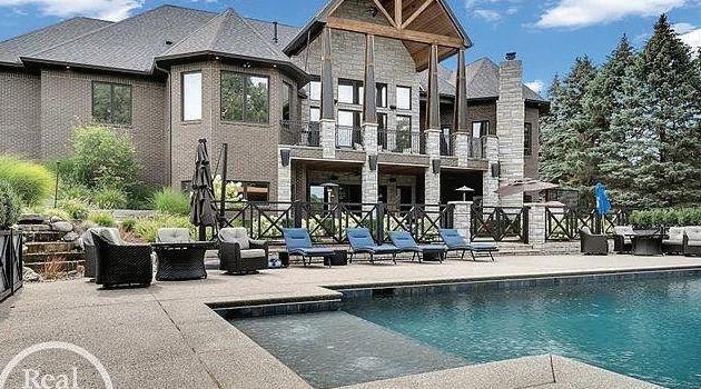 Gated & private 12-acre French Country Manor Estate featuring over 12,000 sq ft of exquisite living space in the heart of Oakland Township; expansive terraced patios leading to Parterre Gardens adjoining a builtin 25’ x 55’ gunite swimming pool. Helipad provides convenience to land helicopter in your own backyard and store it in the State-of-Art helicopter Hangar; extensive landscaping throughout property with 21 flaming gas stone urns, the entire 12 acres have lawn irrigation system throughout, 6-car attached garage plus extensive hangar storage for a car collection and horse barn with 6 stalls for the equestrian. Entertainer’s gourmet kitchen with separate pizza oven, 6 fireplaces, 6 bedrooms plus private loft area, maple planked flooring throughout, finished walk-out lower level features 15’ x 10’ indoor lap pool (42” depth) and gaming areas. No sign on property.