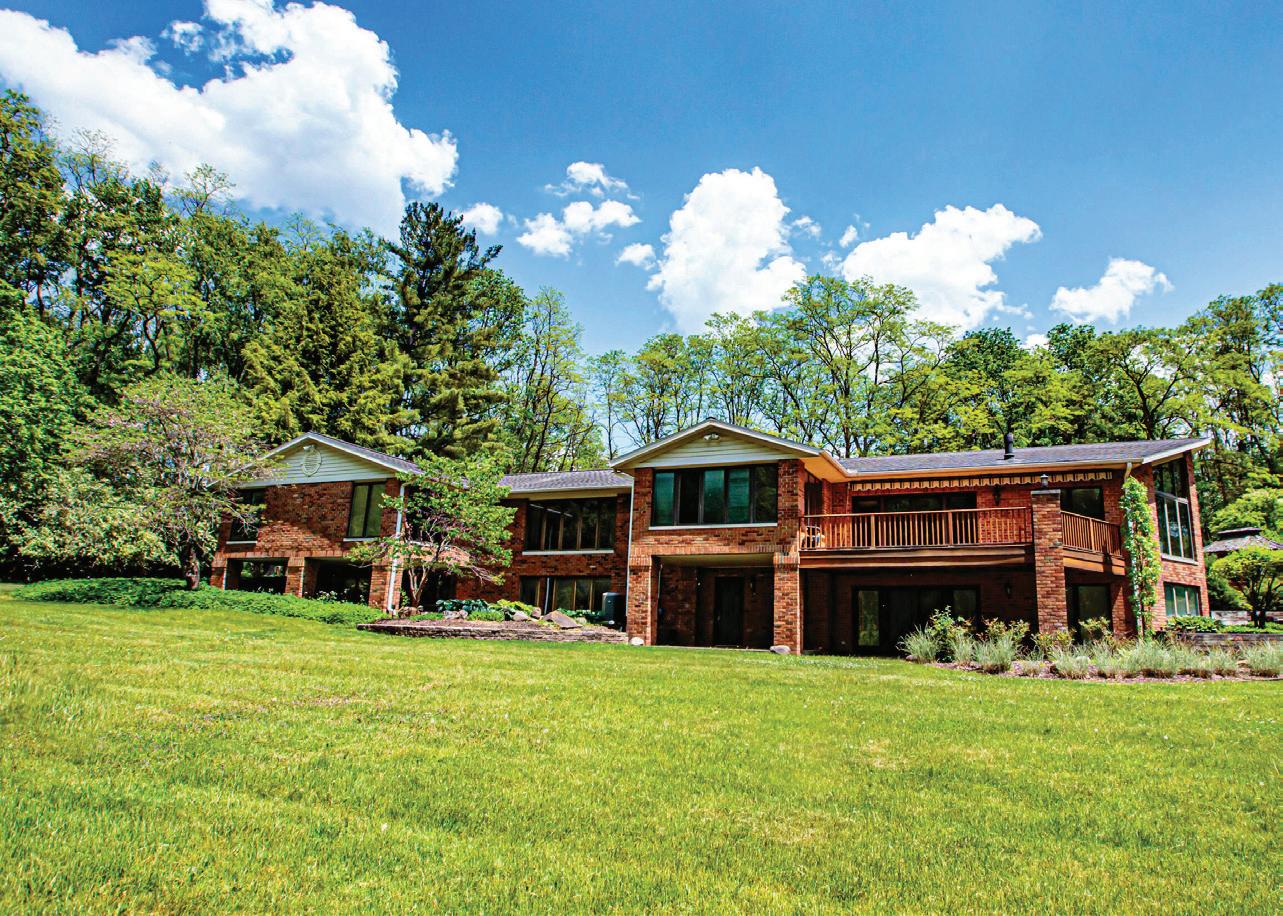 Exceptional custom, ALL brick home (with Glen-Gery handmade brick) on 16.33 Ac in an absolutely gorgeous setting including pond views. Spring fed pond includes a Pergola, beach and deck/dock. High end Wood-Mode custom cabinets, granite, Sub-Zero refrigerator. Balcony of primary bedroom suite for morning co ee or evening relaxation to enjoy the gorgeous views. 5 generous size bedrooms upstairs, one bath completely updated. Built in bookcases in the study, with large windows. New roof and gutters.