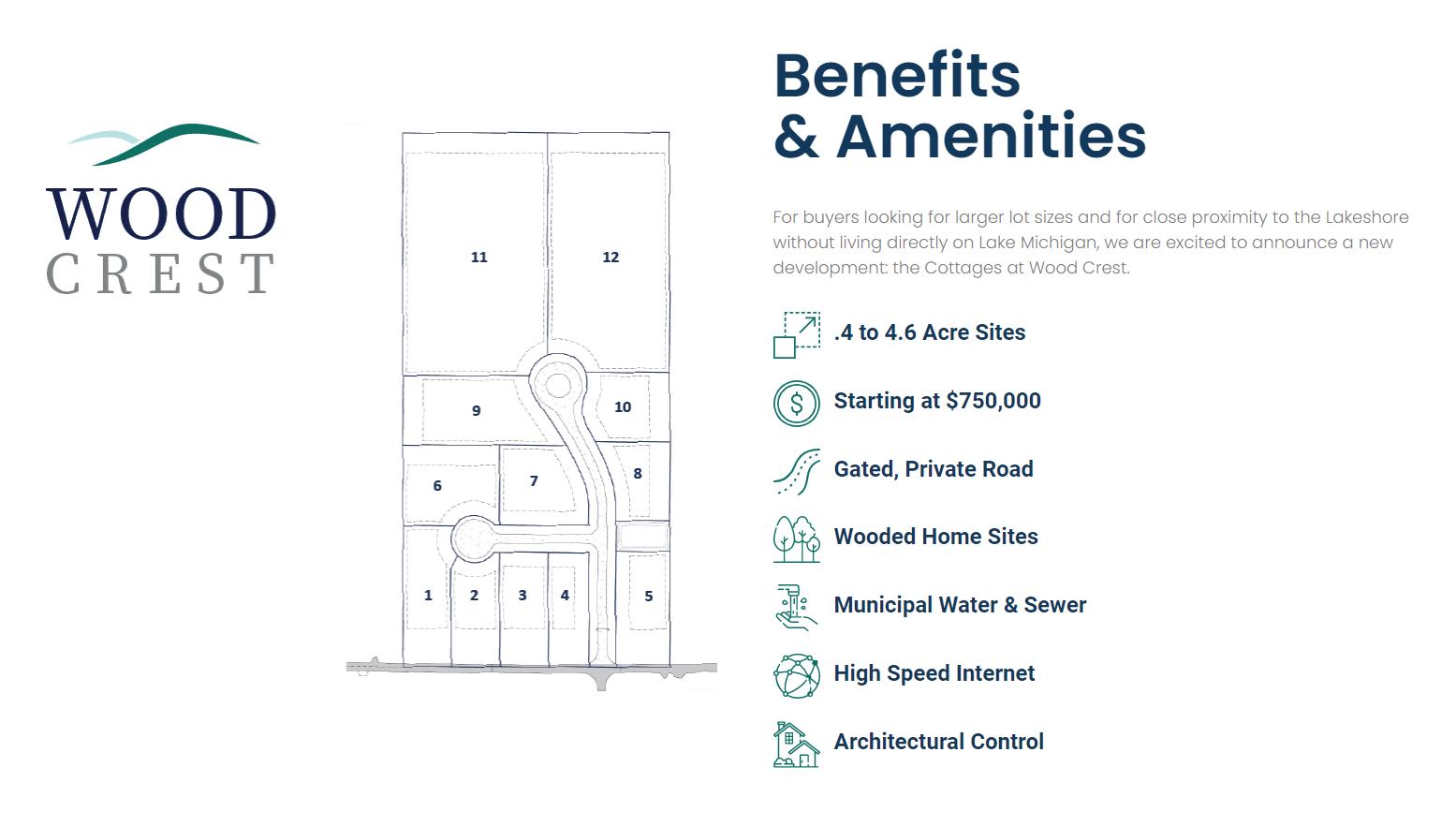 If you envision a home with a larger lot size and desire close proximity to the shoreline without living directly on Lake Michigan, come, build your dream vacation home with us at our new development: the Cottages at Wood Crest. Nestled between Lake Michigan and local blueberry growers, the Cottages at Wood Crest offer a serene, quiet, gated private community, a beautifully wooded vista, and convenient access to the lakeshore through the Pilgrim Haven Natural Area and South Haven’s world-renowned beaches. You have a vision, we make it happen. Recharge, relax, and reconnect at Wood Crest by Cottage Home.