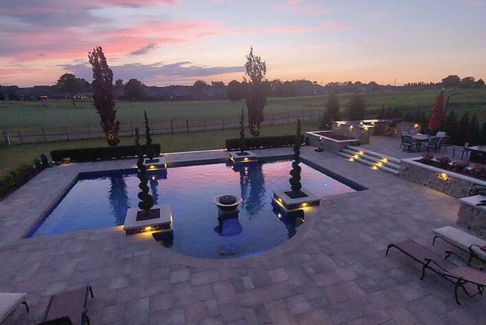 Designers showcase great room ranch with walk-out basement to custom built-in swimming pool overlooking The Orchards Golf Course. Home has been finished with only the finest materials & craftmanship featuring fantastic views from large windows across back of home, Chef’s gourmet island kitchen with built-in commercial grade appliances, 2nd fireplace in large hearth room, spacious owner’s suite with luxury bath, heated floors, built-in coffee bar, sitting room, large walk-in closet finished by California Closets and black-out window blinds; beautiful 8” wide French Oak plank flooring throughout; upper & lower covered terraces overlooking private yard with built-in pool & outdoor kitchen. Saltwater swimming pool was installed in 2022 and features the Pentair automated system, remote control vacuum, flaming fire bowl with waterfall and concert quality sound system. Extensive landscaping and nightscape; handmade custom lighting fixtures; hand scraped custom beams & woodworking; whole-house built-in generator; automation system runs interior sound system, lighting & HVAC; brick paver driveway leads to oversized 3.5-car garage with epoxy flooring, insulated doors & 2nd staircase to basement. Please review extensive list of custom features and amenities.