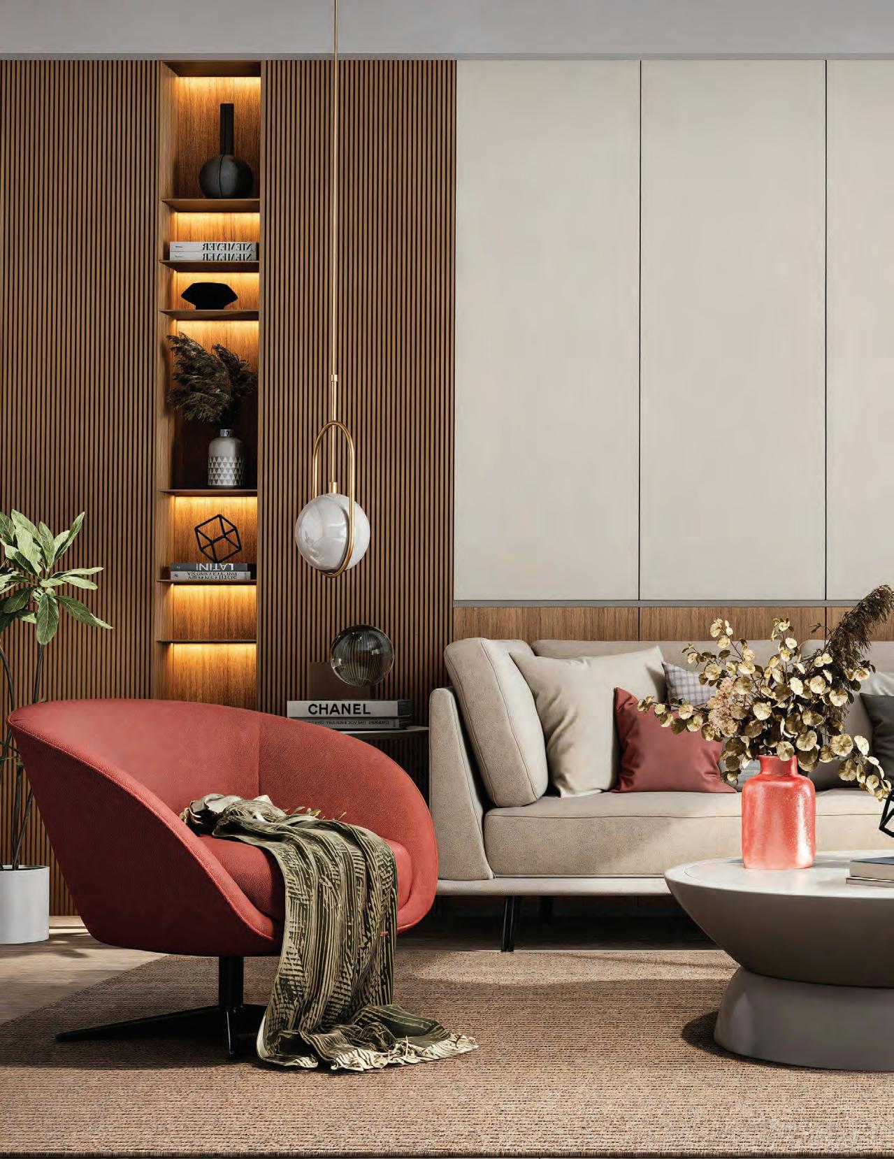 Designers are continuing to move away from rigid, angular furniture toward pieces with softer, sculptural profiles. This trend celebrates rounded edges on sofas, chairs, and even architectural elements like archways and alcoves.