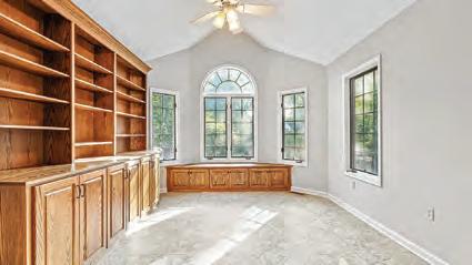 This end unit villa in Milos Haven is truly turn key and offers exceptional privacy at the end of a cul de sac on a peaceful wooded lot. The main level welcomes you with an open concept layout featuring LVP flooring, vaulted ceilings, and a beautifully upgraded gourmet kitchen with quartz countertops, double wall ovens, a gas cooktop with hood vent, soft close white cabinetry, and a shiplap accented island. The great room includes a cozy fireplace and transitions effortlessly into the first floor primary suite, which offers a tray ceiling, two walk in closets, and a spa like bathroom with a frameless glass shower and dual vanity with quartz counters. One of the home’s most charming surprises is a neat secret bookcase door that leads to a hidden storage closet, adding both character and function. An extended three season Ez Breeze room with a shiplap wall and electric fireplace, an addition no longer permitted by the HOA, provides year round enjoyment and opens to a private paver patio. The HVAC unit has been thoughtfully relocated to the side of the home, creating a quiet and serene outdoor setting surrounded by mature trees. Upstairs, the home continues to impress with an enclosed loft that offers added privacy, three generous guest bedrooms, two with walk in closets, and two full baths including a private ensuite featuring a seamless tiled shower.