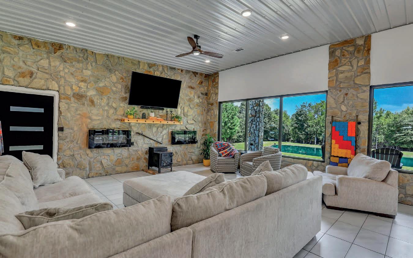 flawless. Retreat to the luxurious owner’s suite—a private sanctuary with a soothing color palette, custom finishes, and a separate sitting room with its own fireplace and fully equipped morning bar. Every detail is designed for relaxation, style, and elevated comfort. Enjoy movie nights in the dedicated theater room or host unforgettable gatherings on the covered outdoor patio, complete with an outdoor kitchen, prep station, and built-in refrigerator—perfect for alfresco dining under the stars. Solid core doors throughout add another level of sophistication and privacy, reinforcing the home’s emphasis on quality and soundproofing. Secluded yet connected, this estate offers the best of both worlds—tranquil living within minutes of premier schools, shopping, and dining.
