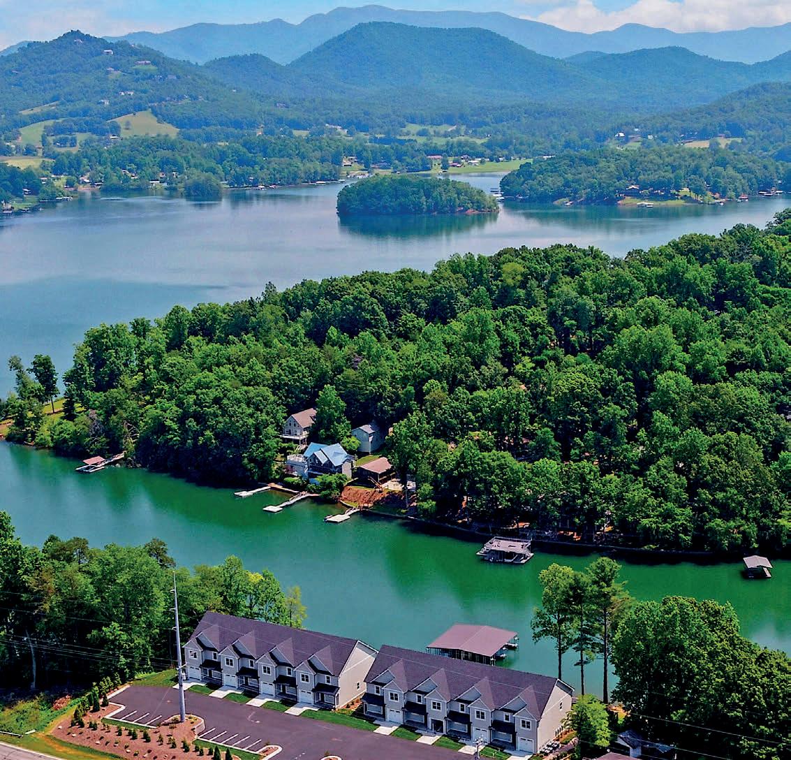 Discover the epitome of lakefront living with these stunning NEW four bedroom, four and one-half bath townhomes, complete with your own private dock slip on Lake Chatuge. These homes provide nearly 3,800 sq ft of luxury, including a private elevator in each unit. A spacious, open-concept great room is perfect for gathering with family and friends. The kitchen features a large island, abundant cabinetry, and an adjoining dining area.