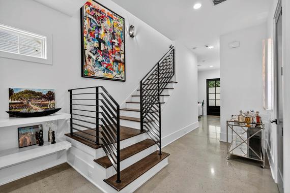 Each of the four bedrooms includes its own bathroom for ultimate comfort and privacy. The chef’s kitchen is equipped with high-end appliances and finishes, and it offers a full view of the courtyard and pool. The spacious primary suite features a smart, functional layout, a generous bathroom with walk-in shower, and dressing room. A versatile fourth bedroom on the main floor, complete with an en-suite bath, easily doubles as a guest room or home office.