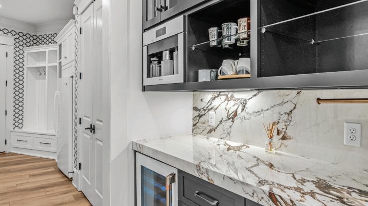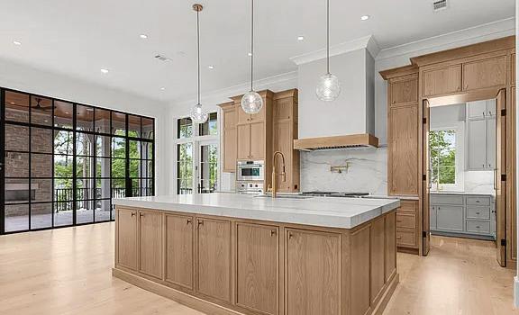 Step inside to a grand interior that radiates luxury and thoughtful design at every turn. The main living area, anchored by floor to ceiling stone fireplace, is ideal for both intimate family moments and grand-scale entertaining. The gourmet kitchen is a culinary dream— featuring custom cabinetry, designer finishes, and professional-grade appliances. A hidden scullery just behind the kitchen provides discreet space for prep and cleanup, allowing your entertaining space to remain