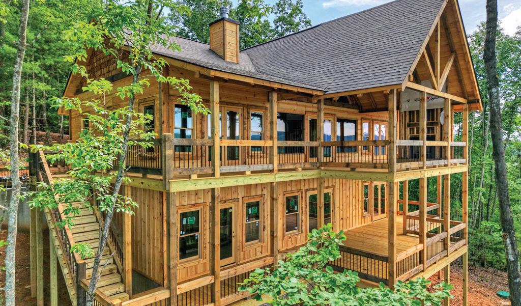 MLS# 416799 | $1,289,777 Brand new quality construction in beautiful Mountain High (gated & paved community). Best long-range multi-layered mountain view on the market… sweeping from North Carolina, Georgia, and into Tennessee. 4-bedroom rustic ranch with one-level easy living. Great room & dining room separated by a two-sided rock fireplace. Dormer windows light up the well-appointed kitchen & dining area. Great room glass wall opens to a huge open gable party porch with exterior fireplace and sweeping views in all directions.Full Laundry Rm (Laundry Sink/Granite) & Guest Half Bath finish out Main Level. Finished Terrace Level w/Wet Bar, Bonus Family Rm w/Fireplace, THREE Guest Rooms & TWO full baths (Another Master Suite on Terrace Level).