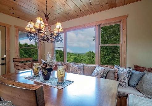 Introducing the epitome of luxury log home living! This mountain top Canadian Western Red Cedar log home is nestled adjacent to the Cohutta Wilderness area boasting expansive, long-range panoramic views of the surrounding mountains, creating a serene and awe-inspiring backdrop. Total privacy is assured with over 5 acres of land, encompassing three distinct lots, providing ample space for both solitude and exploration. Located within a pristine, high-end community with a gated entrance & paved roads for easy access, this home offers both security and ease of access. Inside, the residence is a masterpiece of impeccable craftsmanship and custom high-end finishes, each element thoughtfully curated to enhance comfort and style. No expense was spared ~ Stunning reclaimed wood floors & doors, columns of massive Canadian logs/beams, & Marvin windows w/hidden screens are just a sampling of the exquisite interior finishes. Main level offers a beautiful foyer opening into expansive great room with soaring cathedral ceilings/wall of windows/wood burning stone fireplace, open gourmet kitchen w/custom kitchen cabinets/soapstone counters & backsplash/reverse osmosis tap/Wolf range/Sub Zero fridge, Master suite w/reclaimed mushroom board walls/travertine tile shower/walk in closet/enclosed sun porch, & half bath. Upper level offers large loft with impressive mountain views & 2 bedroom suites. Terrace level offers large family/game room w/wall of windows/home theater system, bunk room with 6 built in bunk beds, full bath, & laundry room. Exterior offers screened covered porch with stone fireplace, patio, private balconies off upper bedrooms, porteco, & fire pit. Metal roof offers rustic durability complete with solar panels. High end community offers access to two stocked ponds, a gazebo picnic area, underground utilities, and hiking trails. This log home is not just a place to live—it’s a lifestyle, blending luxury with nature in perfect harmony.