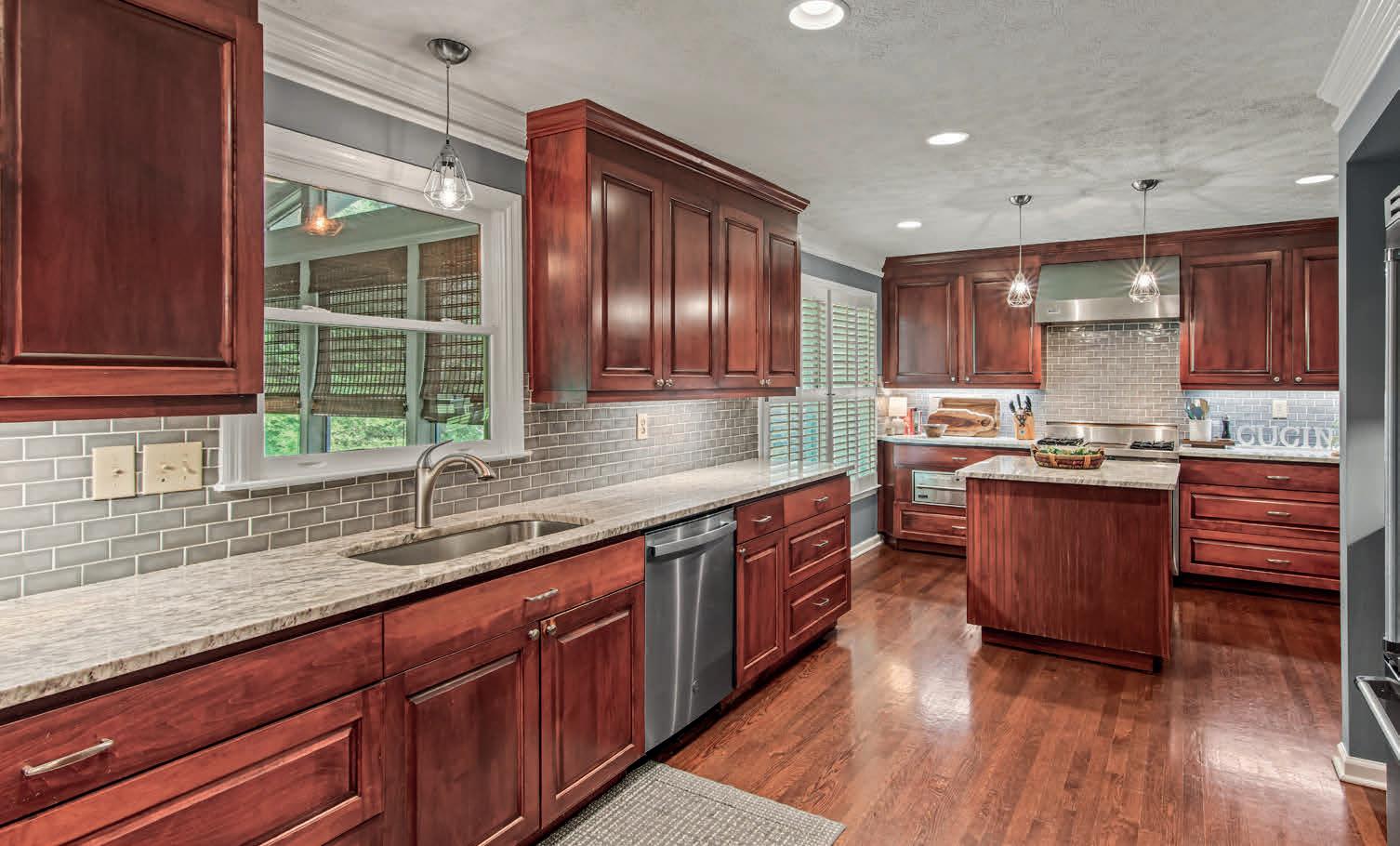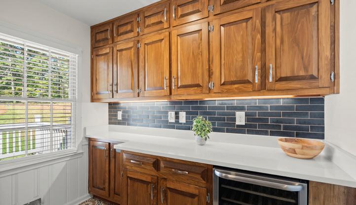 Discover this beautifully updated ranch in Whitlock Heights! Gleaming hardwood floors flow throughout, leading to a spacious, sun-filled den with a cozy brick fireplace—perfect for relaxing evenings. The stunning designer kitchen features rich wood cabinetry, bold navy accents, quartz countertops, a stylish island with seating, and a dedicated beverage station with wine fridge, ideal for both everyday living and entertaining. Natural light pours in, highlighting views of the large backyard and filling the home with warmth. Downstairs, the fully finished terrace level offers a private bedroom and full bath, perfect as a guest suite, retreat, or home office.