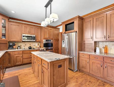 Luxurious Living Inside and Out – Exquisite Upgrades and Stunning Outdoor Retreat! Step inside this impeccably upgraded home, where elegance and craftsmanship meet modern functionality. The interior boasts a luxury kitchen featuring granite countertops, top-of-theline Viking appliances, a spacious kitchen island, and gleaming hardwood floors throughout. Enjoy year-round comfort in the four-season sunroom, perfect for relaxation or entertaining. The main level also includes a custom wine cellar tucked under the staircase, a unique touch for wine enthusiasts. The primary bathroom has been completely remodeled, showcasing a spa-like glass shower with a rain shower head, a soaking tub, and a custom-designed closet set against beautiful tile flooring. Additional enhancements include updated AC ductwork, allowing the ceilings to be raised by 1.5 feet, and elegant scalloped archways, adding a sophisticated architectural element to the home. Outside, the property continues to impress with a host of exceptional upgrades. The third garage, connected by a breezeway, offers versatile space ideal for a workshop or additional storage. The newly remodeled deck features durable Trex decking, extending your living space for outdoor entertaining. A serene pond near the front entrance and a tranquil waterfall feature in the backyard create a calming ambiance. The professionally landscaped grounds are highlighted by flagstone hardscaping, a patio, and a stone staircase leading to the lower level, all surrounded by lush greenery maintained by a new irrigation system. This home is a true masterpiece, offering an unmatched blend of luxury, functionality, and stunning outdoor living spaces. Don’t miss the opportunity to make it yours!