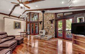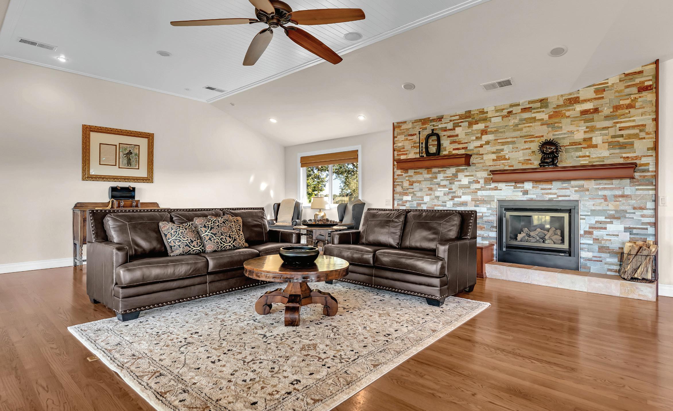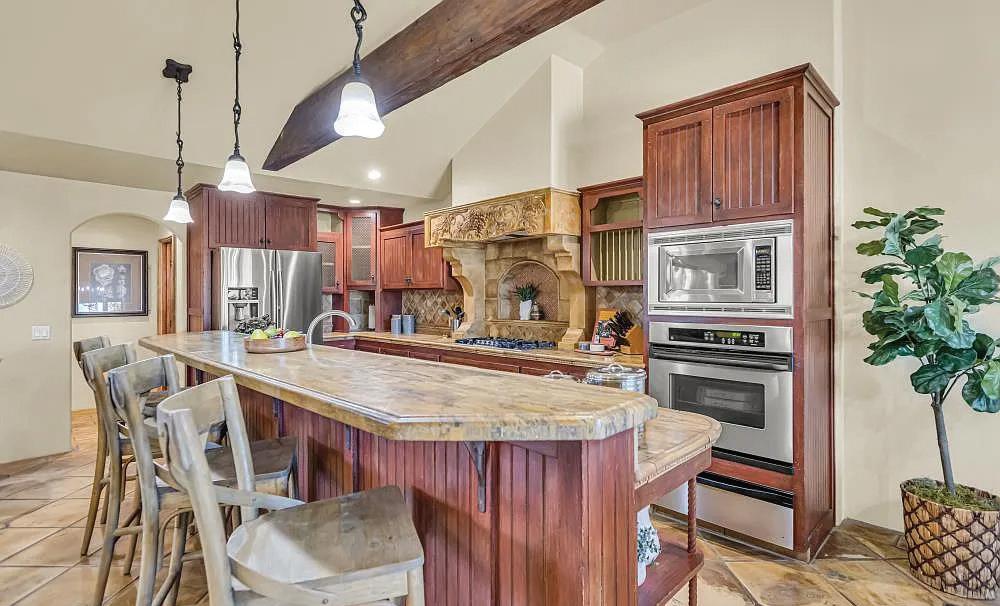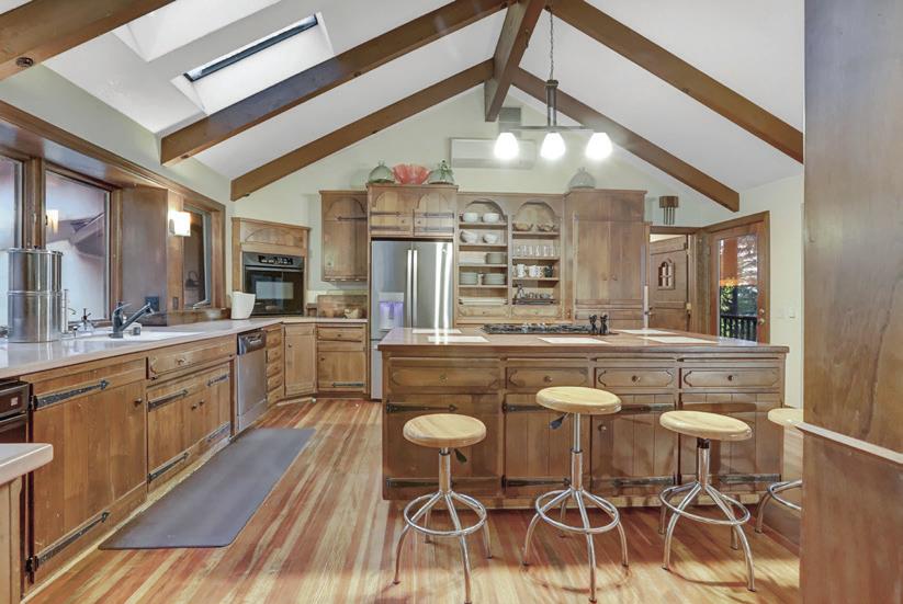 Experience this stunning Tahoe inspired estate that sits at the top of the hill built by master craftsmen. This extraordinary home blends luxury and function with over 5, 500 square feet of refined living space, including 3 spacious bedrooms and 4 full baths. The residence features soaring wood barrel ceilings, a dramatic floor-to-ceiling rock fireplace, and a wall of windows that capture breathtaking natural light. Rich hand-carved wood accents and hand-cut stonework showcase the artisan details throughout. At the center of the home is a chef’s kitchen, designed with high-end appliances, solid granite countertops, wine cooler, and custom cabinetry, flowing seamlessly into the formal dining room. The primary suite is a true retreat with outside access, a walk-in closet, and a spa-inspired bathroom. Ideal for creative living, the home includes an art studio, office, and library. A private 1-bedroom apartment with separate interior and exterior access is perfect for multi-generational living or for extended guests. Enjoy four fireplaces, an elevator, a 2-car garage, plus a 2nd oversized garage designed for RVs, boats, or a full workshop. From the hand-crafted front doors to the expansive design and thoughtful amenities, this home offers exceptional quality, space, and versatility.