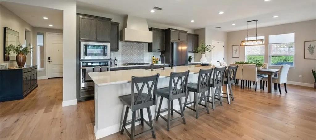 Imagine coming home to a place where every day feels like a vacation. Situated just off Highway 1, between San Luis Obispo and Santa Barbara, Trilogy at Monarch Dunes offers an exceptional coastal resort lifestyle-and this Monterey III residence captures it beautifully. Set on one of the most private lots in the community with no neighboring views, this 2023-built home offers rare tranquility in a resort setting. The 1,936+/- sq ft open-concept floor plan features two bedrooms, two baths, plus a den/office, with engineered hardwood flooring throughout the main living areas. The chef’s kitchen includes dark wood cabinetry, quartz countertops, a large center island, and walk-in pantry, flowing seamlessly into the living and dining space.