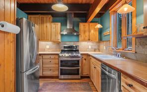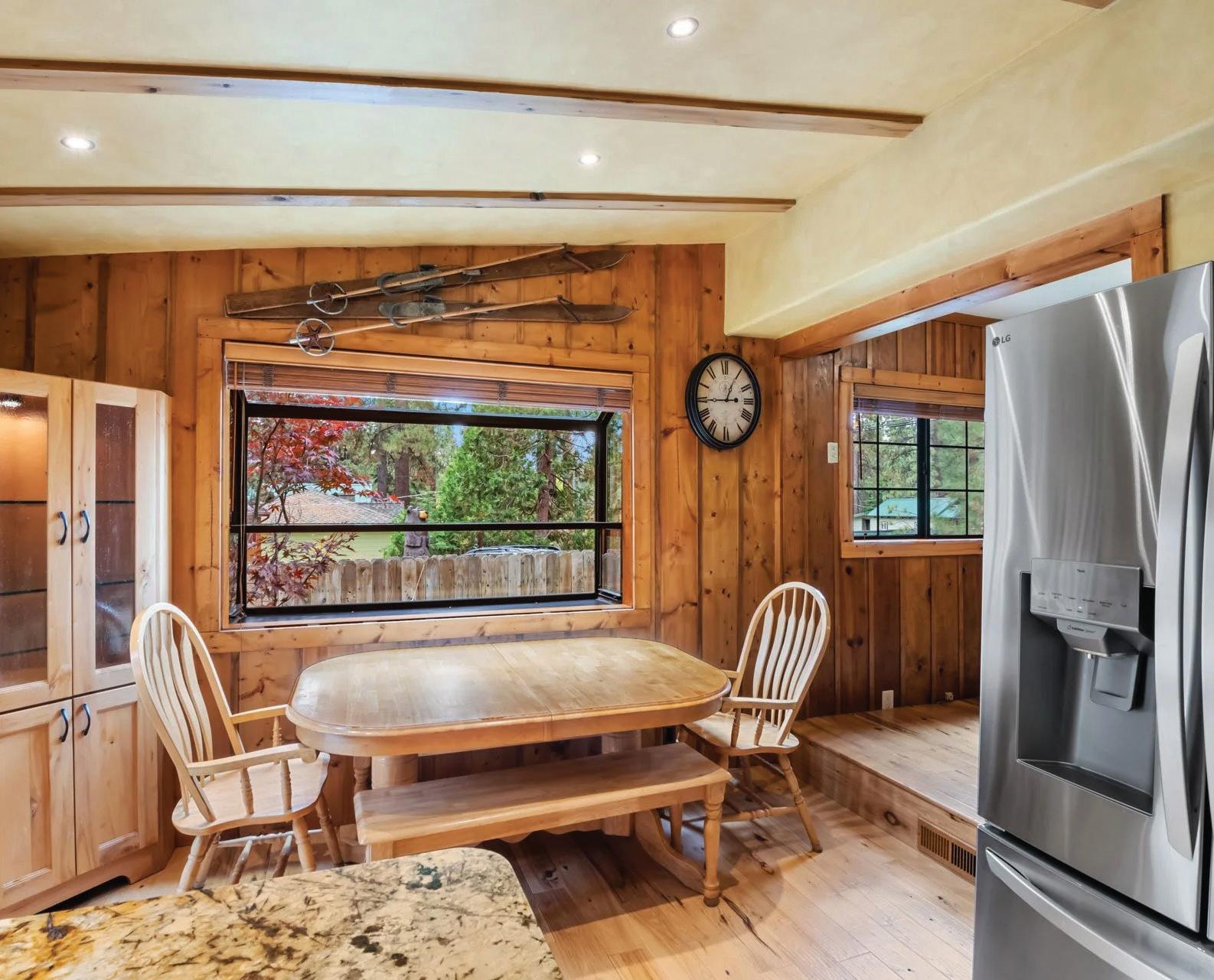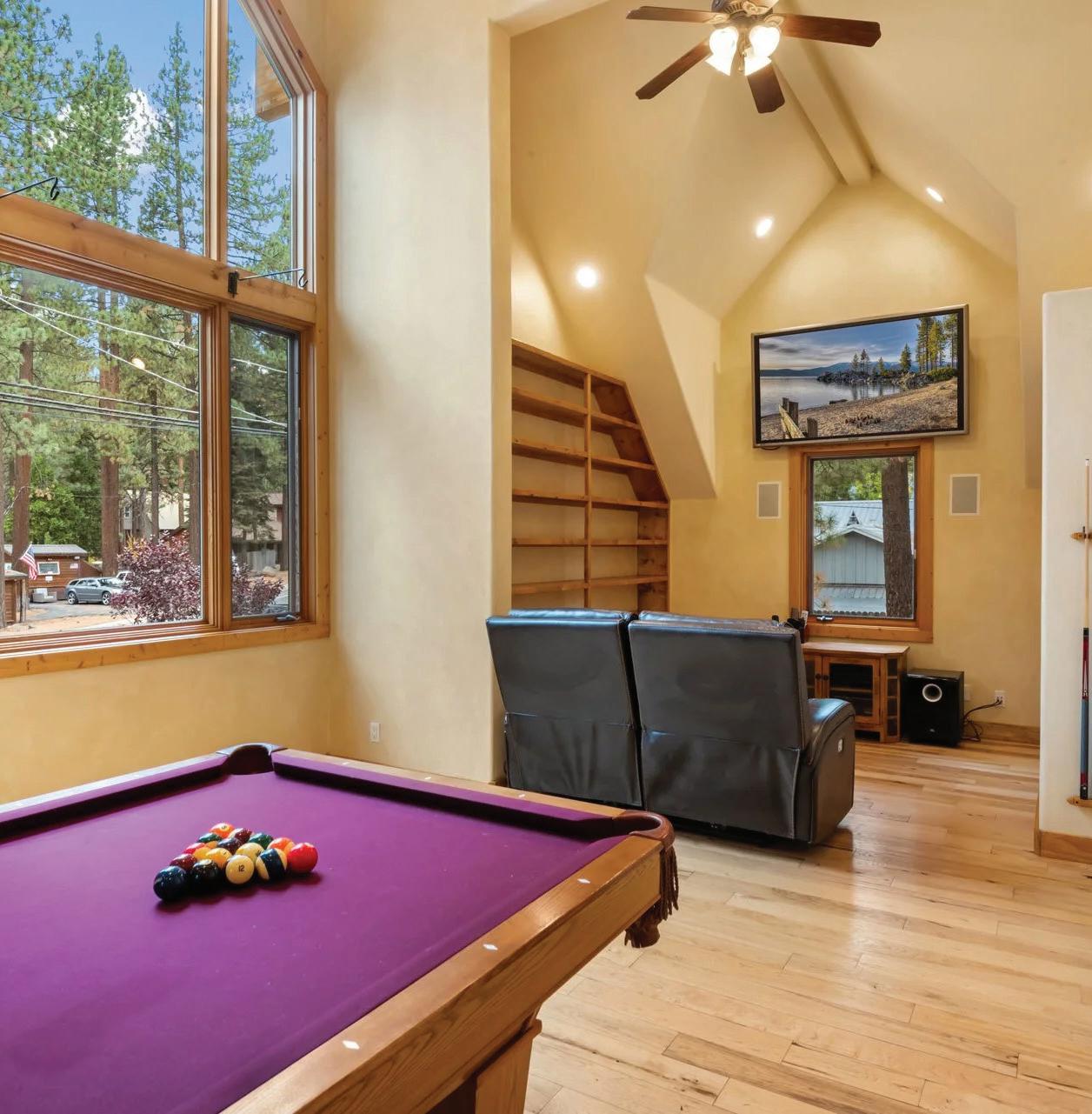 This 5-bed, 2.75-bath home began as a 1940s cabin and has been expanded into a stunning lodge with soaring ceilings, hickory floors, and knotty alder cabinetry. The primary suite features a private office, spa-style bath, and walk-in closet, while the guest wing offers 3 bedrooms and a game room with pool table. Enjoy a paver patio with hot tub, fire pit, and year-round creek. Oversized garage+ generator included. Just minutes to Lake Tahoe beaches and Kings Beach dining and shopping. Only 15 minutes to Northstar’s skiing, biking, Ritz-Carlton, and village.